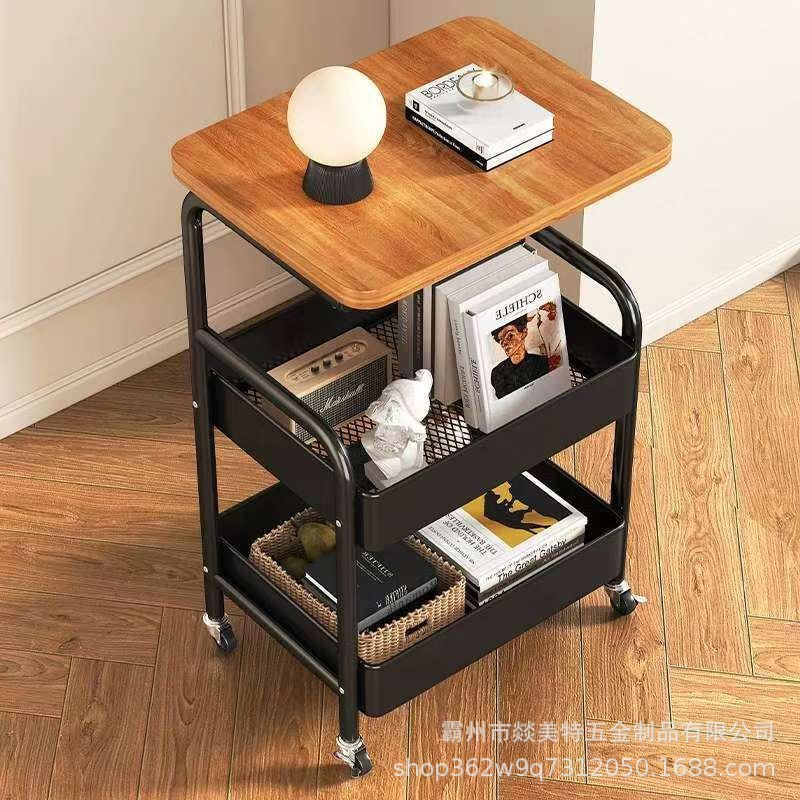 可動式収納ラック、家庭用寝室、リビングルーム、滑車付き、テーブルボード付き、小型トロリー、シンプルな多層スナック収納ラック