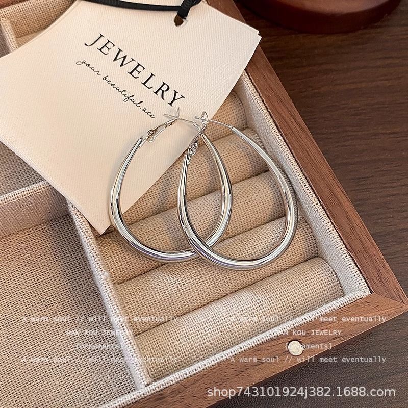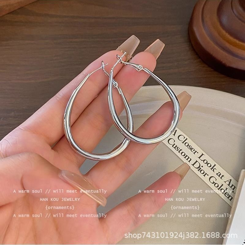 S925銀の色の輪のイヤリングの女性の幾何学の円の冷たい風の気質のファッション的な耳の輪の小さい大衆の設計は簡単に耳飾りを飾ります。
