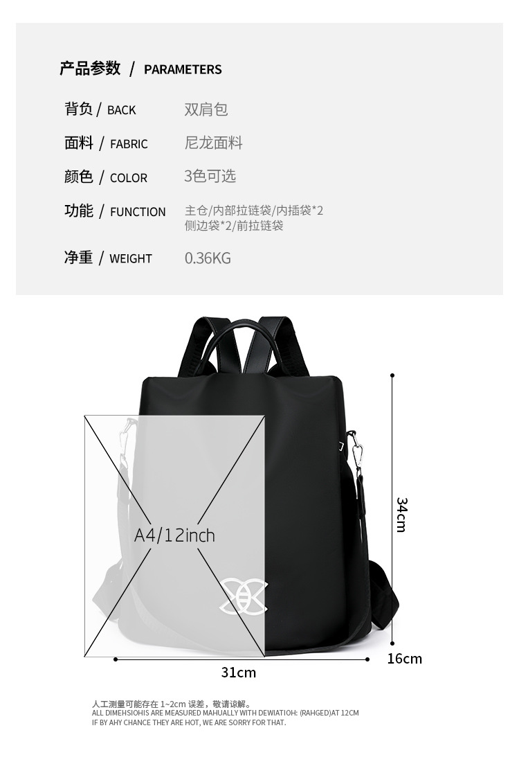 クロスボーダー新型防水オックスフォード布女性リュックサック日韓大容量学生授業カバン軽旅行リュックサック