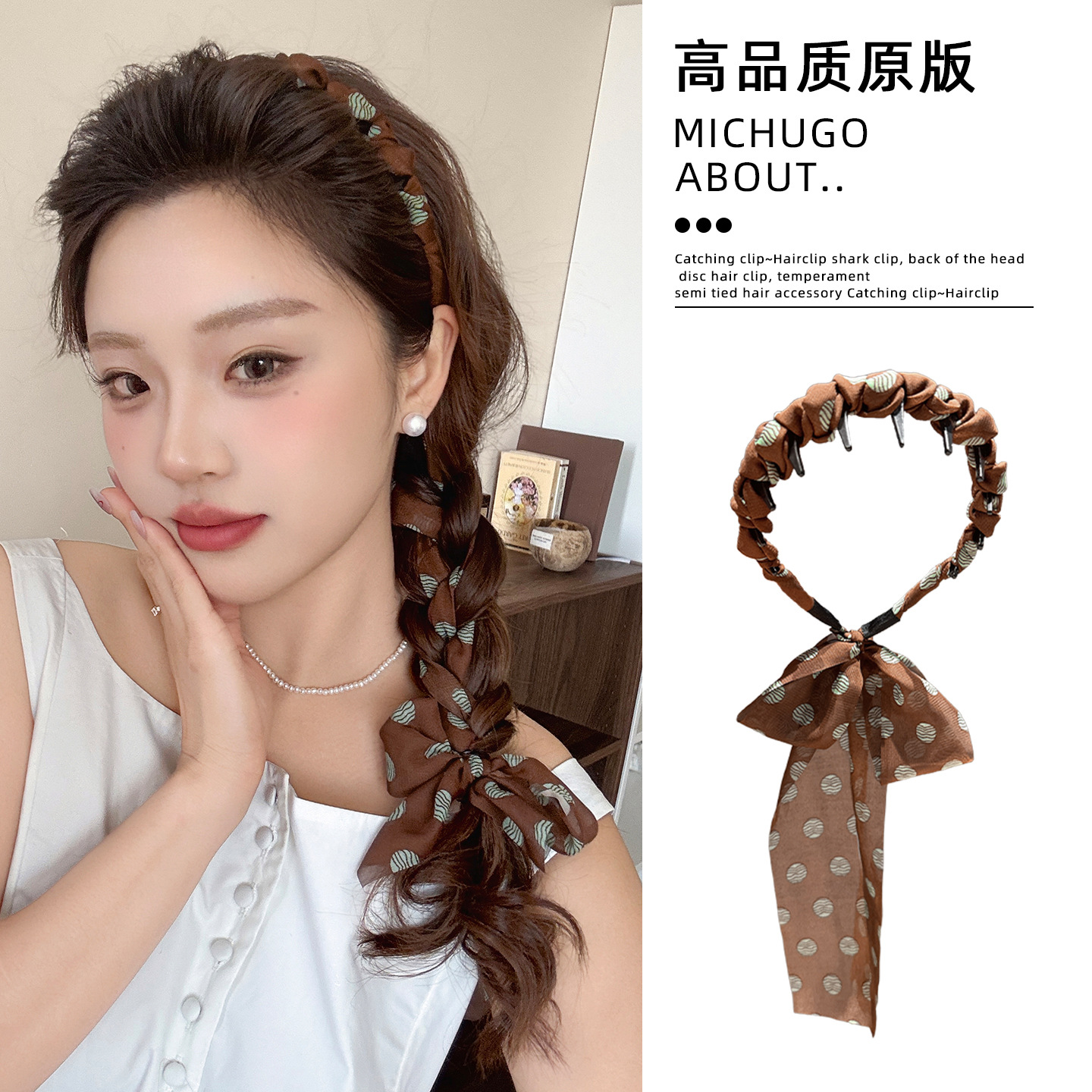 赫本风木耳边串珠发箍减龄带齿梳高颅顶头箍显脸小防滑洗脸压发卡