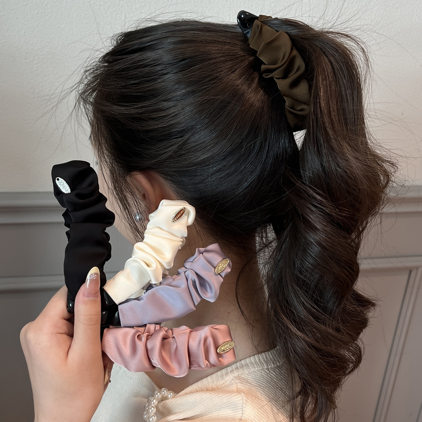 法式纯色仿真丝金标发圈简约气质慵懒风大肠发圈网红发夹发饰
