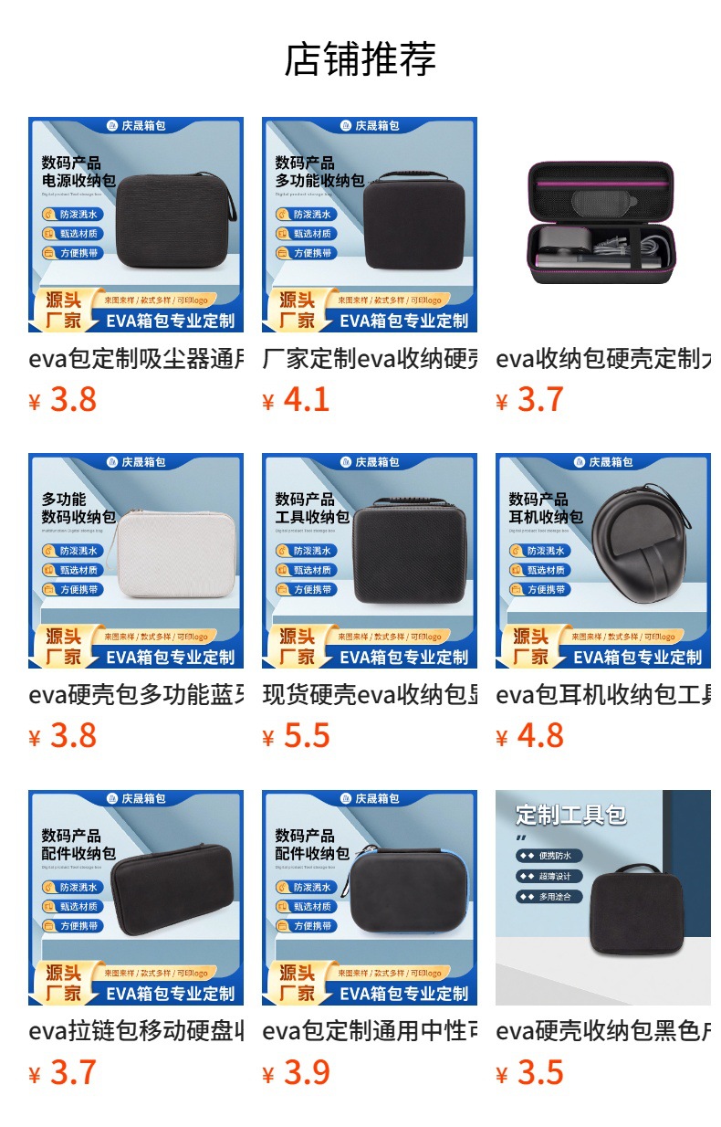 EVAデジタル包装箱移動充電宝チャックバッグ携帯防振防水皮面黒色収納袋eva