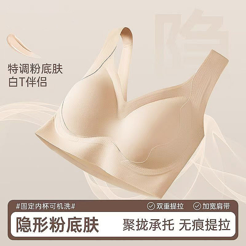 无痕美背内衣女舒适裸感背心式提拉上托软支撑侧收聚拢粉底液文胸