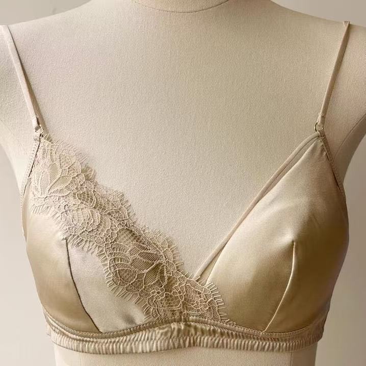 法式深V不对称蕾丝聚拢舒适上托细肩带无痕内衣三角杯无钢圈胸罩