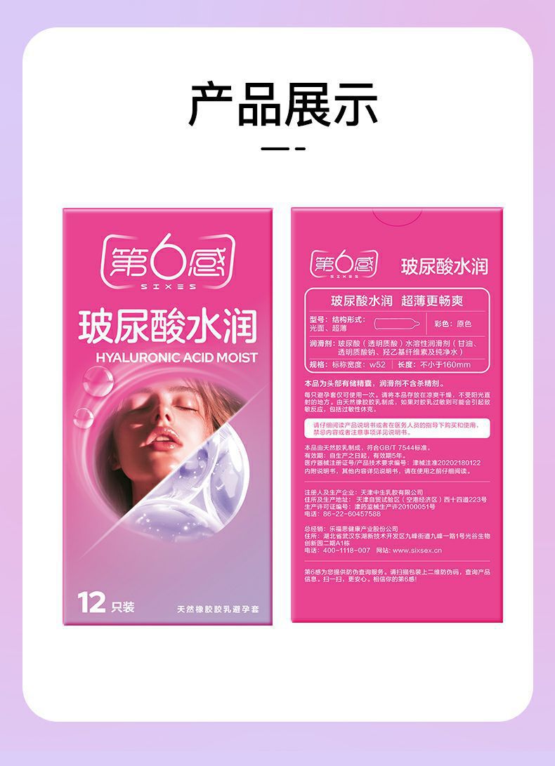 第六感コンドームのヒアルロン酸水潤12匹の超薄のすっきりしたコンドームの成人計生用品の卸売り