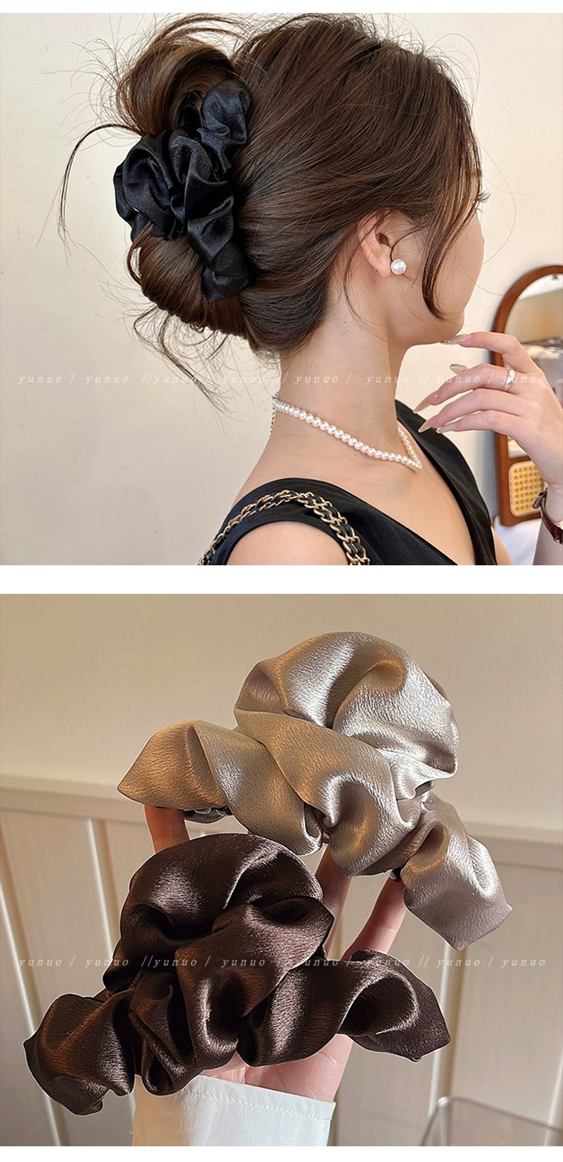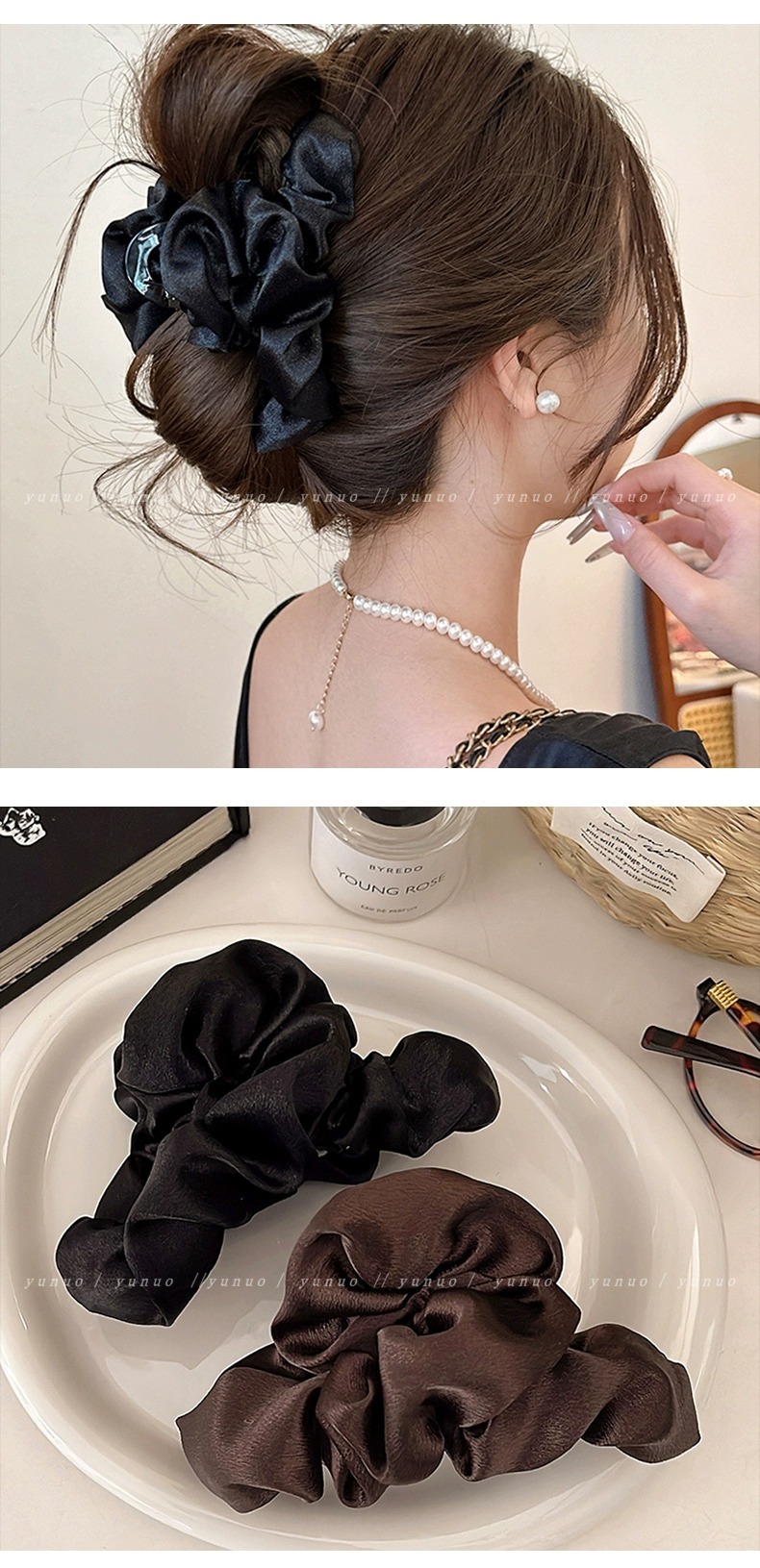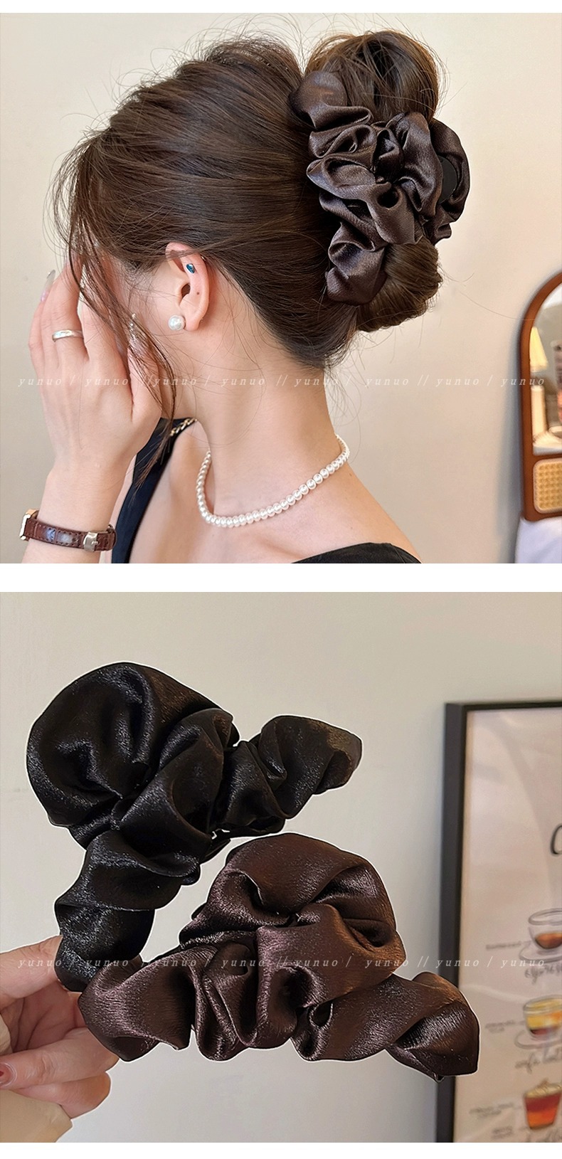 高端气质咖色褶皱大号抓夹女后脑勺发夹高级感盘发鲨鱼夹2025新款
