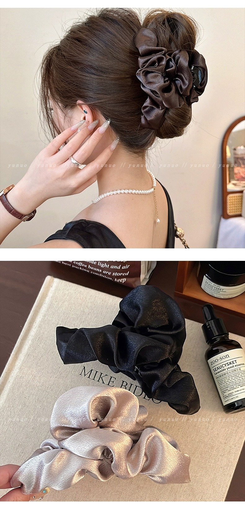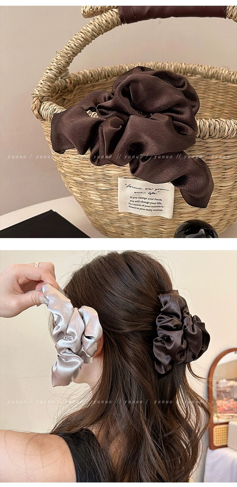 レトロなシンプルな泡のお下げのひもの女性2024の新型の高級感の髪飾りの気質のポニーテールは電話の糸の輪を編みます。