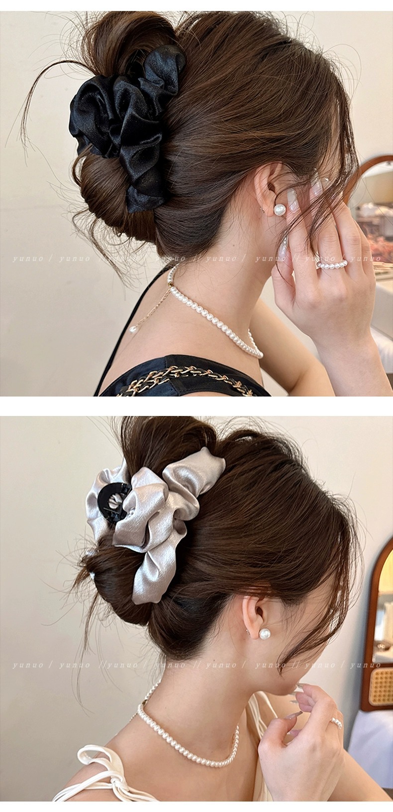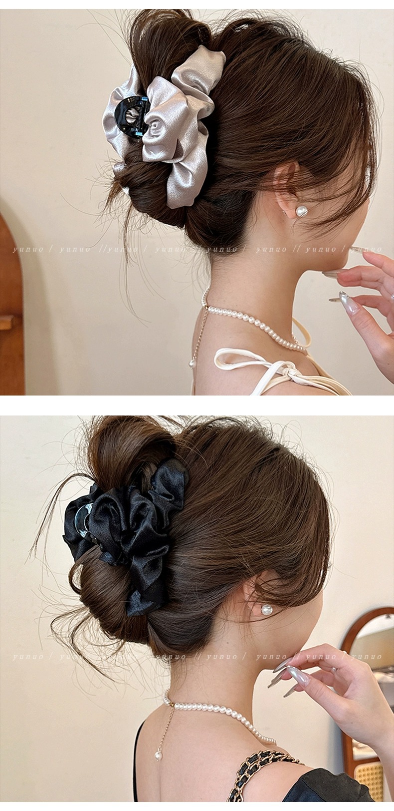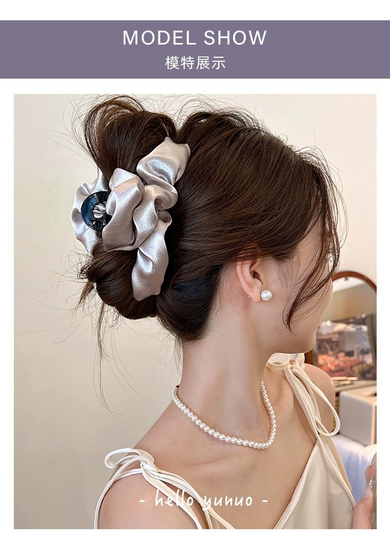洗練された気質のしわ布芸クリップ2025新型ヘアクリップ女後頭部高級感が多いサメクリップ