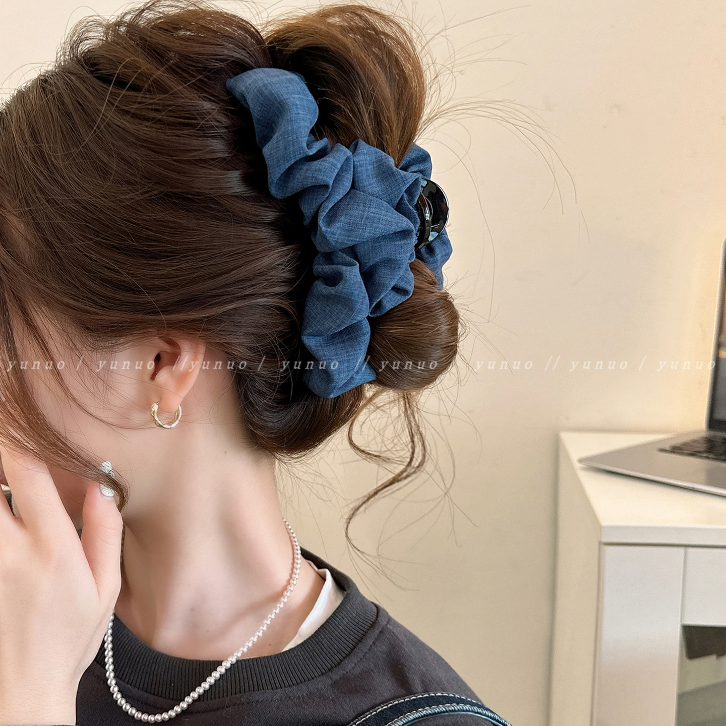 温柔气质牛仔蓝云朵抓夹后脑勺发夹女2025新款高端鲨鱼夹子高级感