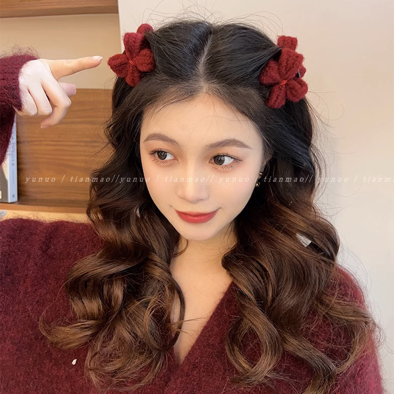 秋冬毛糸蝶結び高級感クリップ女2024新型後頭部ヘアピン気質優雅サメクリップ