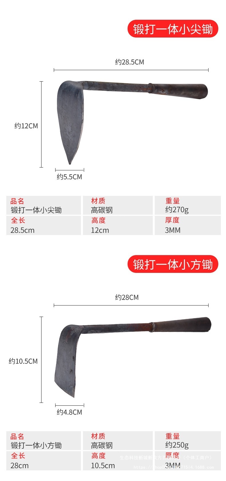 仕様とモデル 鍛造一体型小型尖頭鍬,鍛造一体型小型角鍬