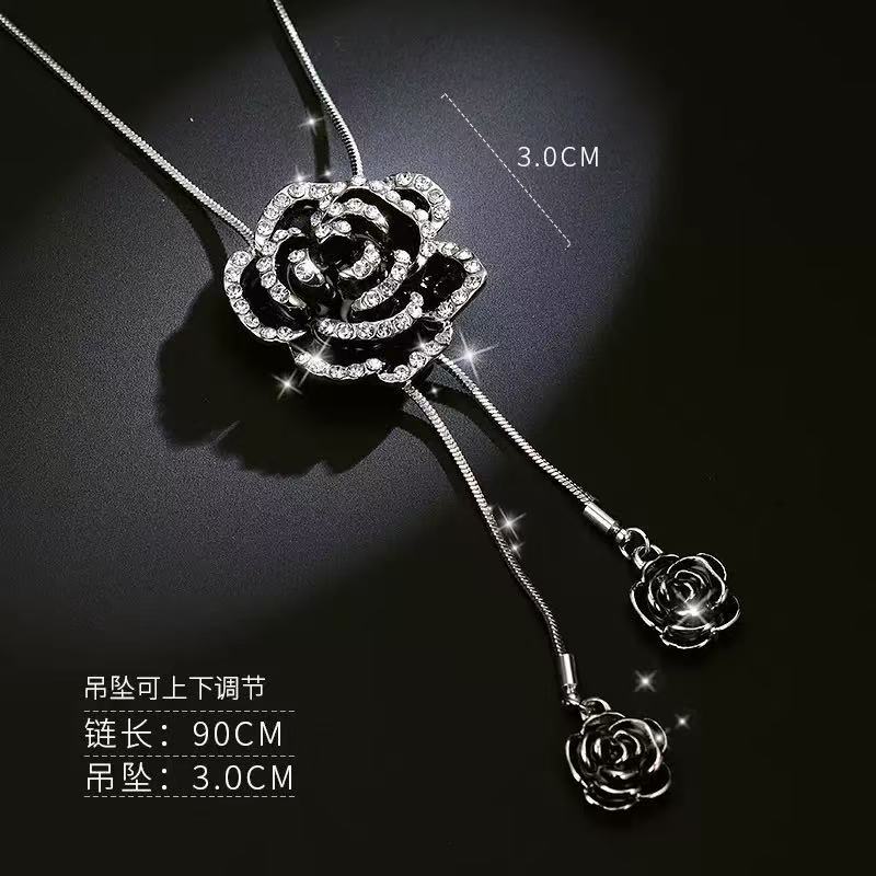 調節可能なホットセール高品質ブラックローズネックセーターチェーンレディースハイエンドロング多用途ロングネックレスアクセサリーバッチ
