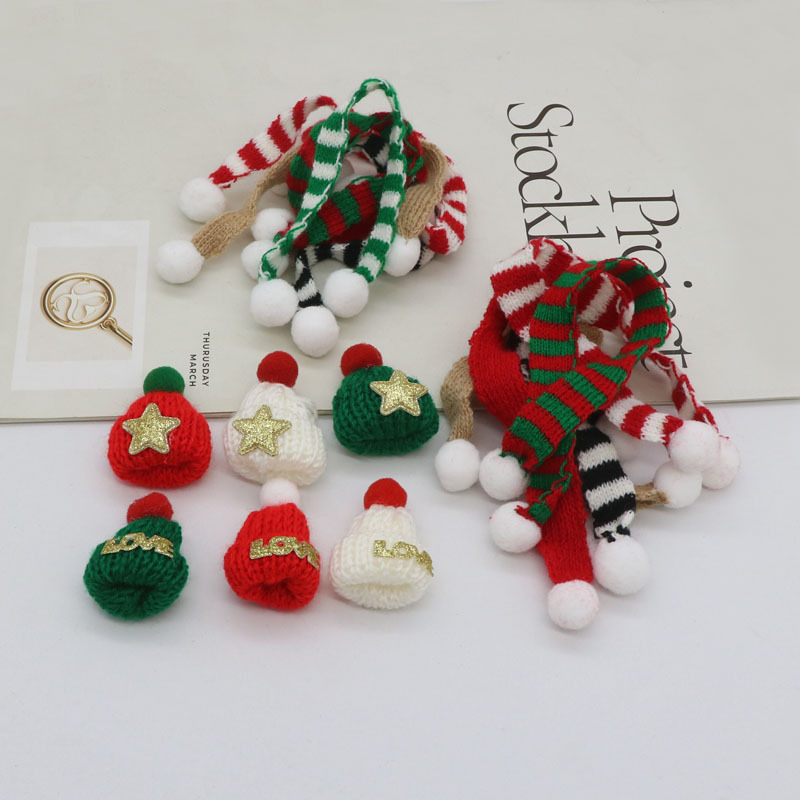 跨境圣诞节迷你针织帽公仔玩偶毛线围脖多巴胺diy服饰娃娃配件