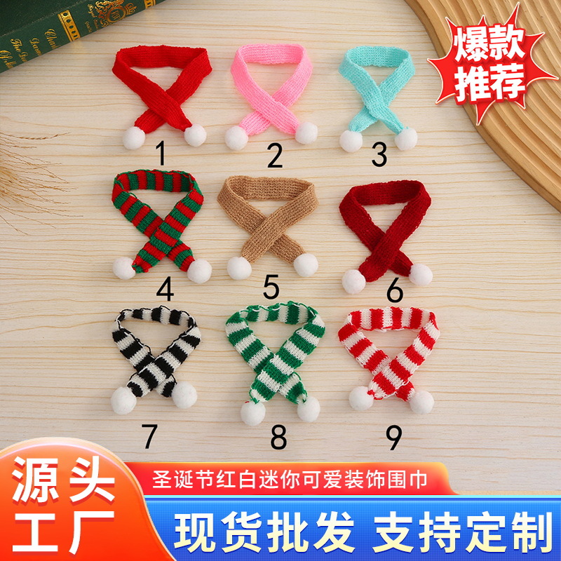 迷你卡通公仔装饰配 饰针织圣诞节红白迷你可爱装饰围巾 宠物围脖