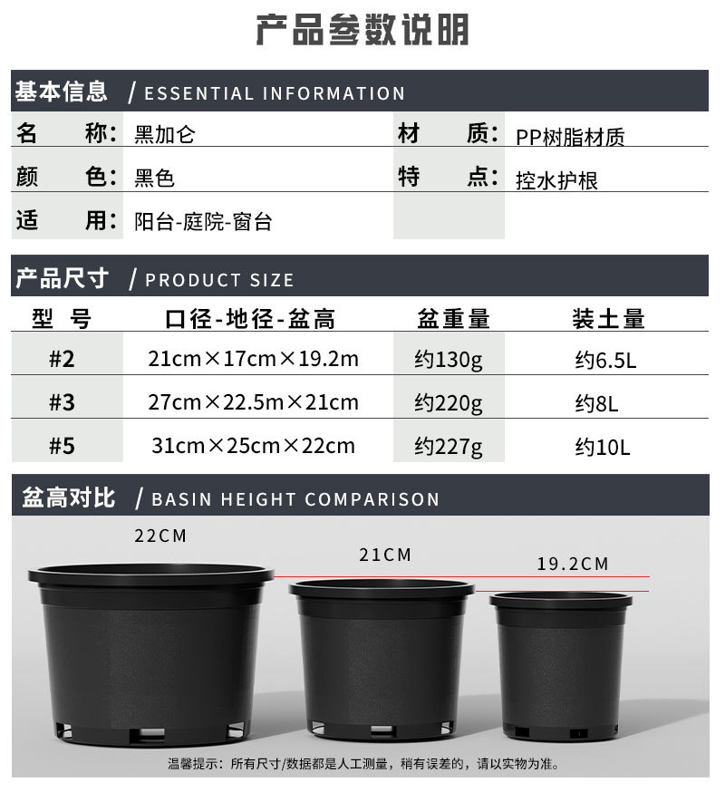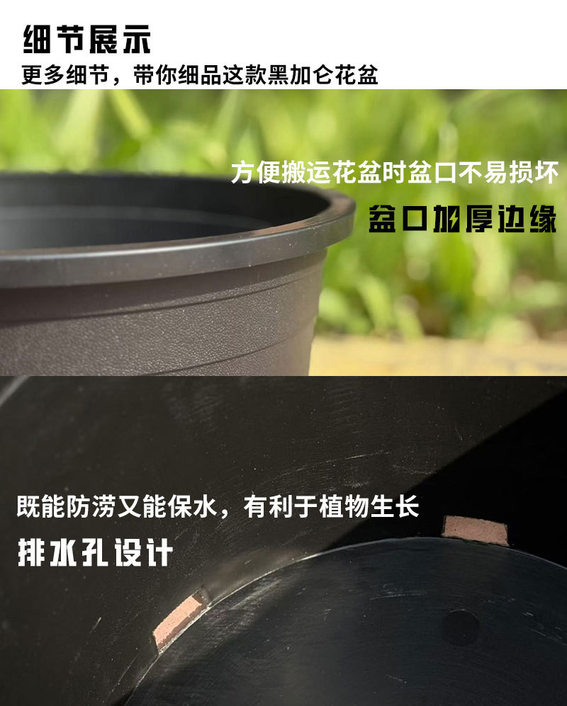 黒根制御ガロンポット、低くて通気性の良いプラスチック植木鉢、蘭、デンドロビウム苗、ポトス多肉植物バラ、大型植木鉢