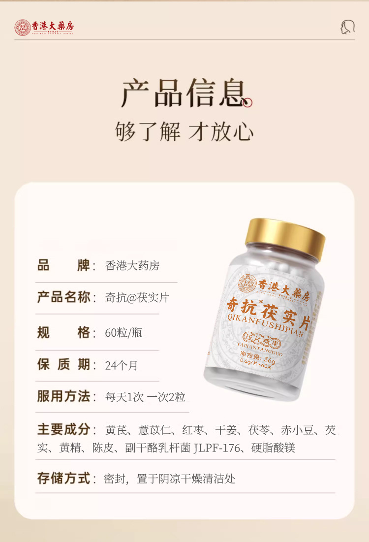 香港薬局の特注品、奇抗茯実片(フツイシエンピアン)、湿気を解消する黄耆と麦芽の配合、工場直販
