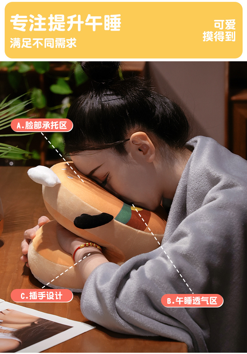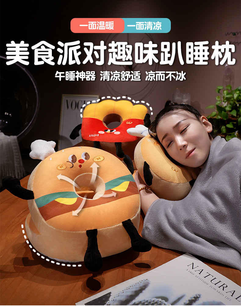 楽しくてかわいいハンバーガー昼寝枕、小学生昼寝枕、オフィス昼寝枕、テーブル枕、睡眠枕