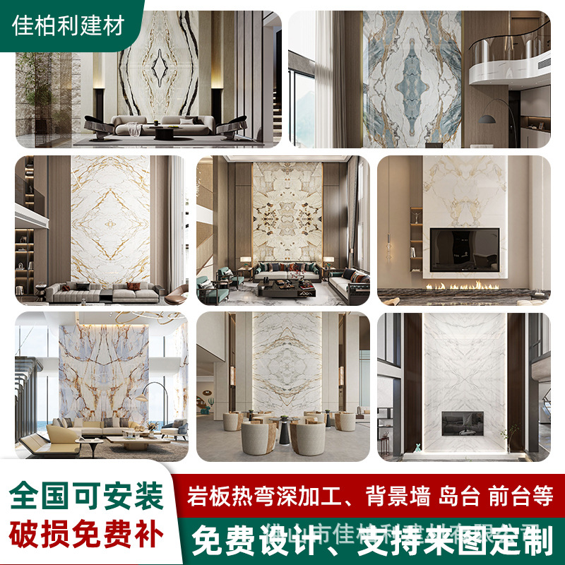 复式别墅大平层岩板背景墙定制墙面奢石石材纹理岩板热弯工艺加工