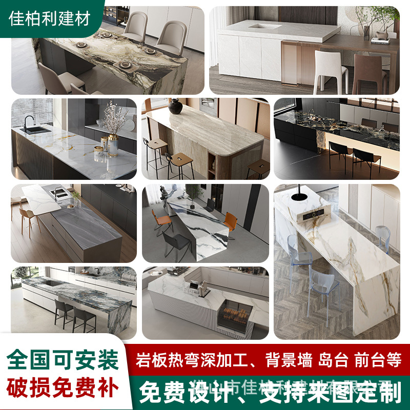 岩板岛台柜一体储物奢石定做伸缩可移动大理石热弯深加工定制厂家