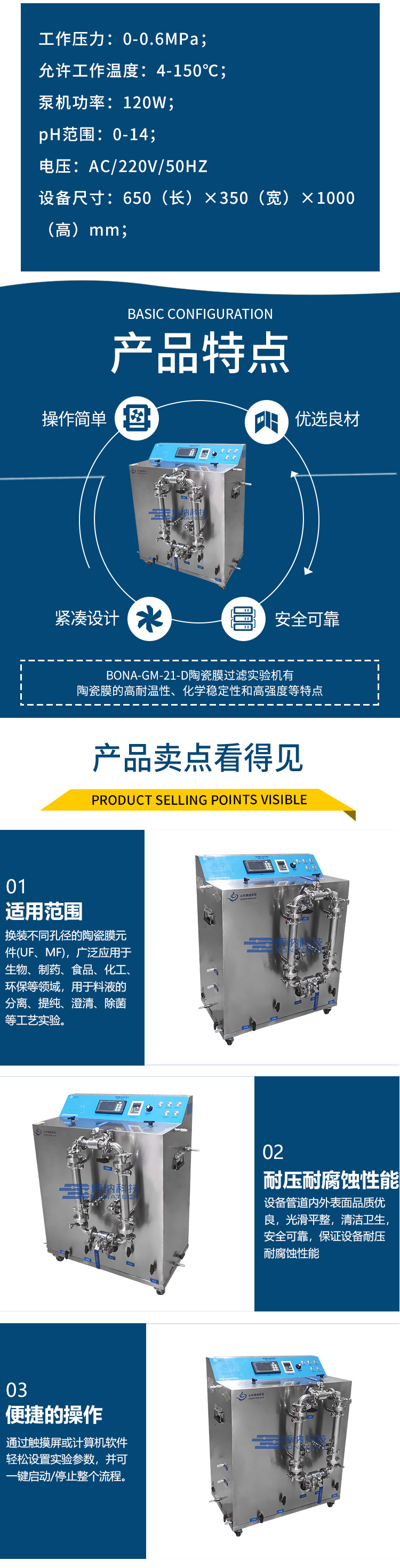BONA-GM-18H2J 膜分離濃縮装置精製/浄化/滅菌科学研究用膜濾過装置