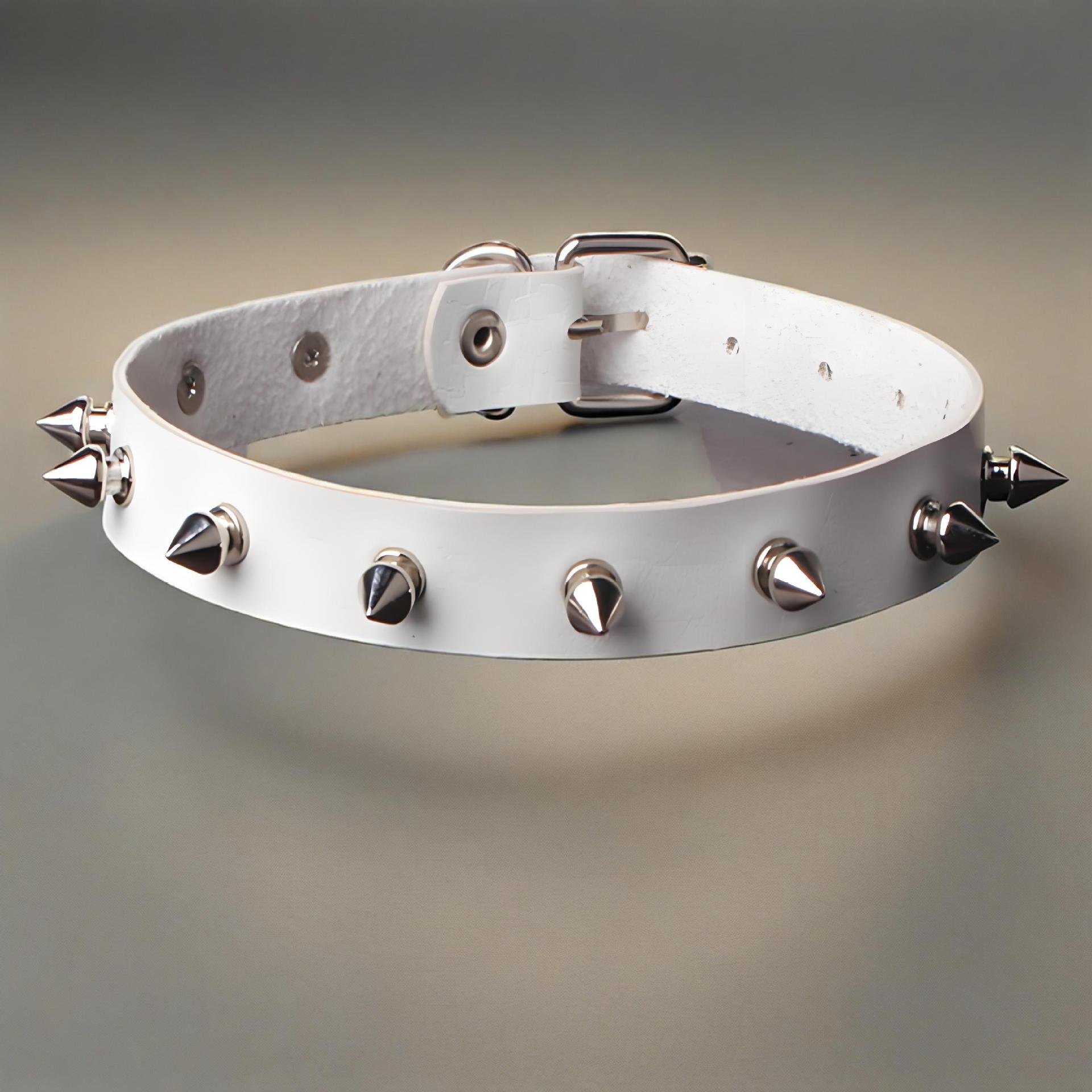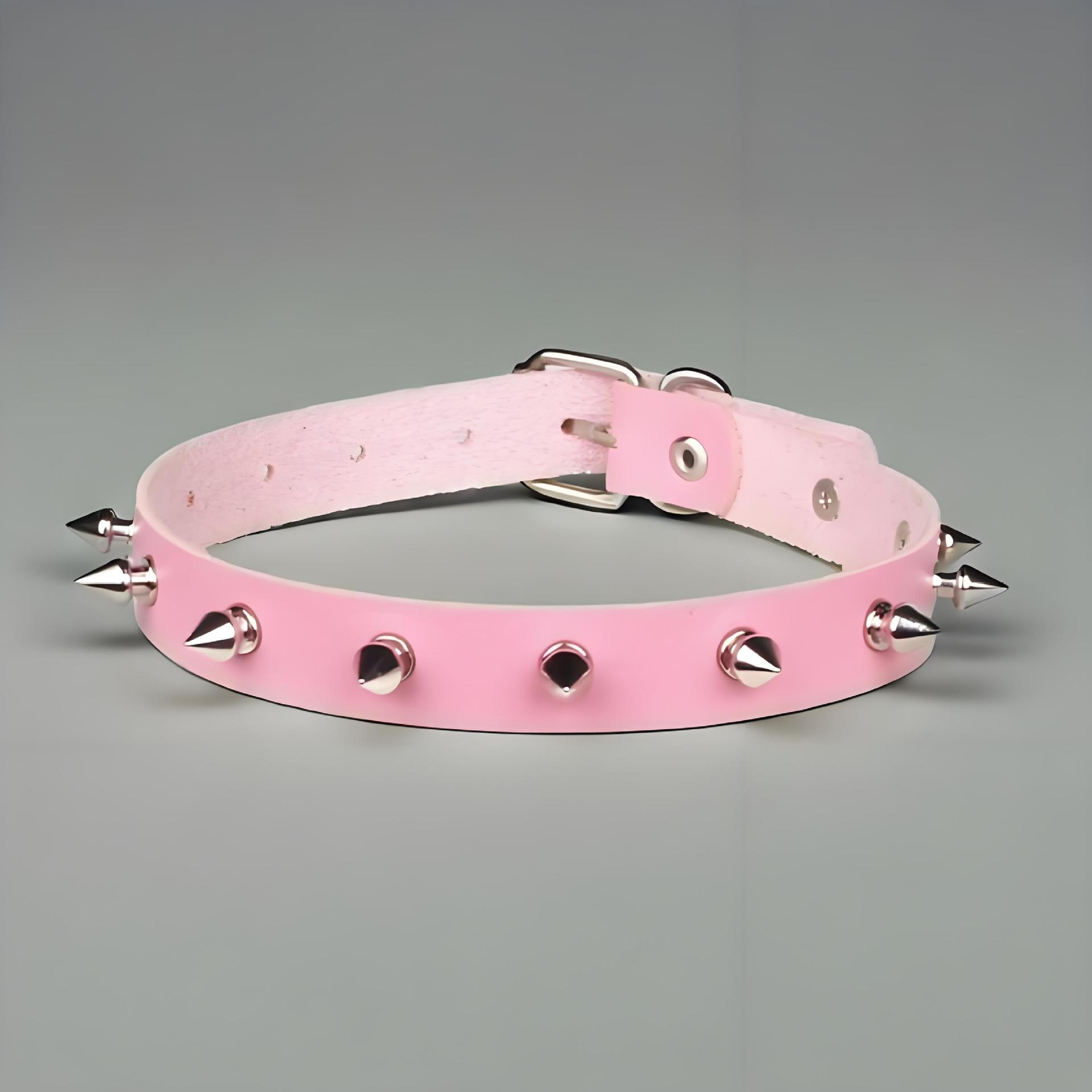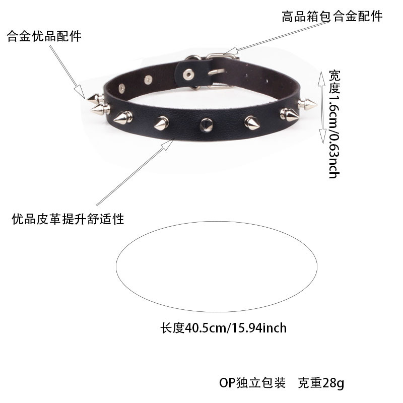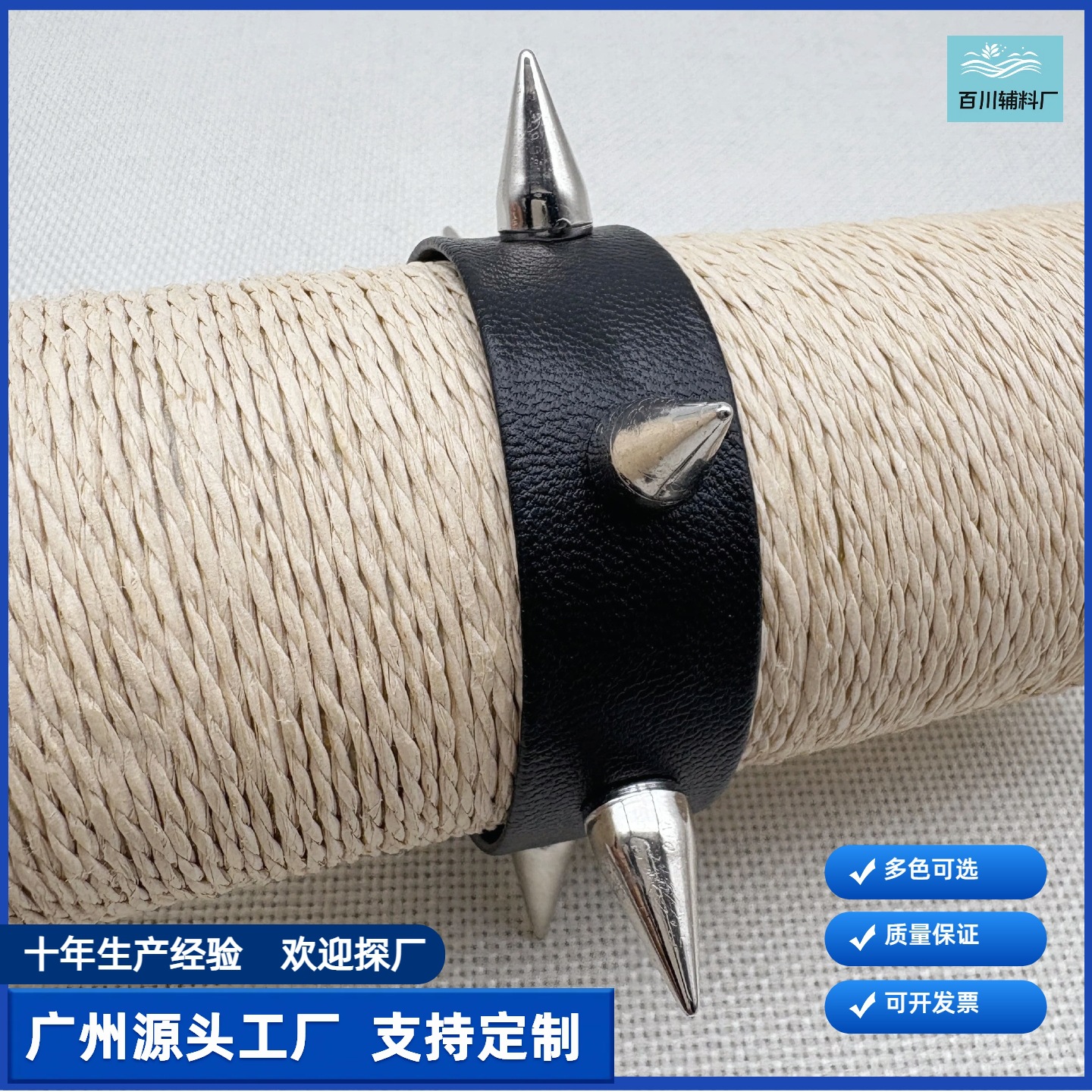 柳钉配件辅料厂家欧美朋克风2厘米PU皮革皮条电镀树脂尖钉颈项圈