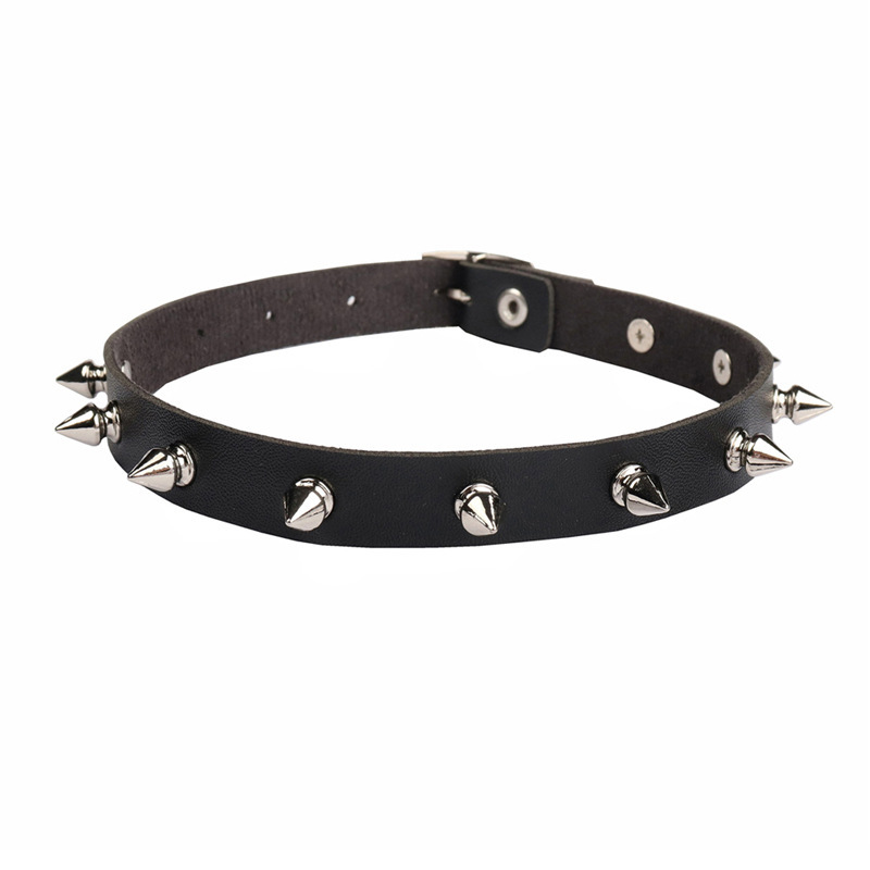 小众デザイン皮质チョーカー首轮レディースリングPUブラック尖ったパンク原宿ゴシック风ネックリング