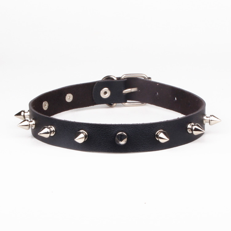 工場直販パンクチップリベットレザーカラー欧米原宿カラーcosplayゴシックロックネックチェーンレザー