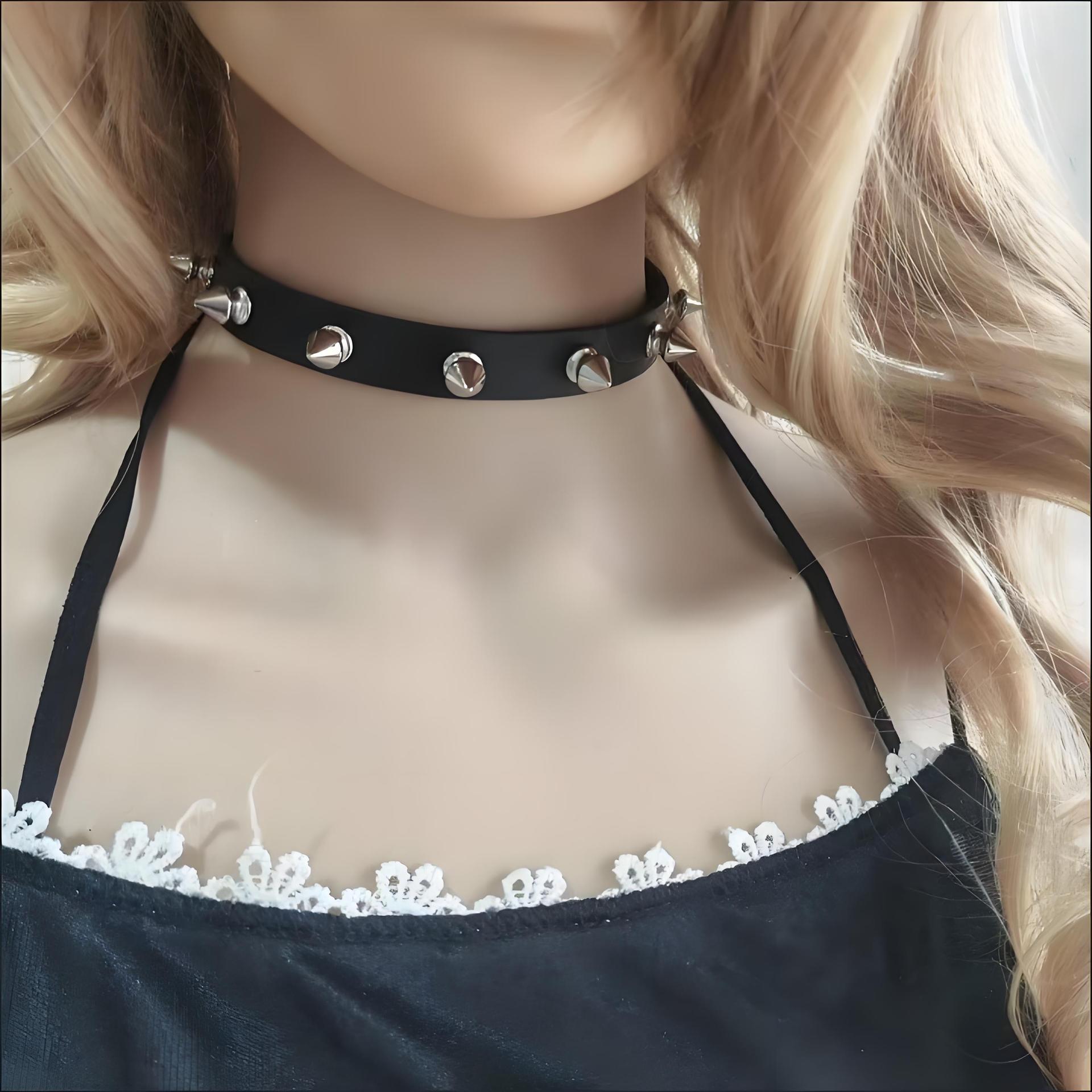 ヨーロッパとアメリカの原宿パンクPUレザースパイクネックレスネックレスジュエリーファッションオルタナティブ個性チェーンロックチェーンボーンチェーン