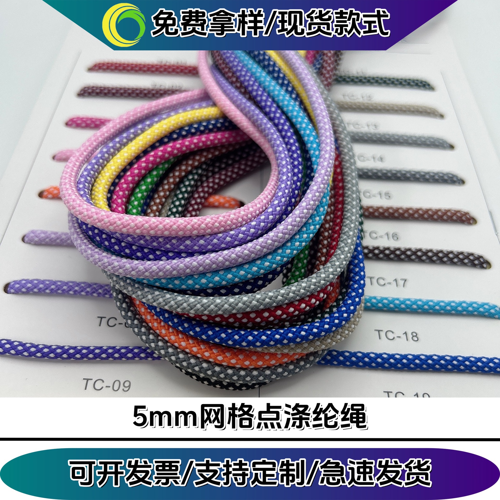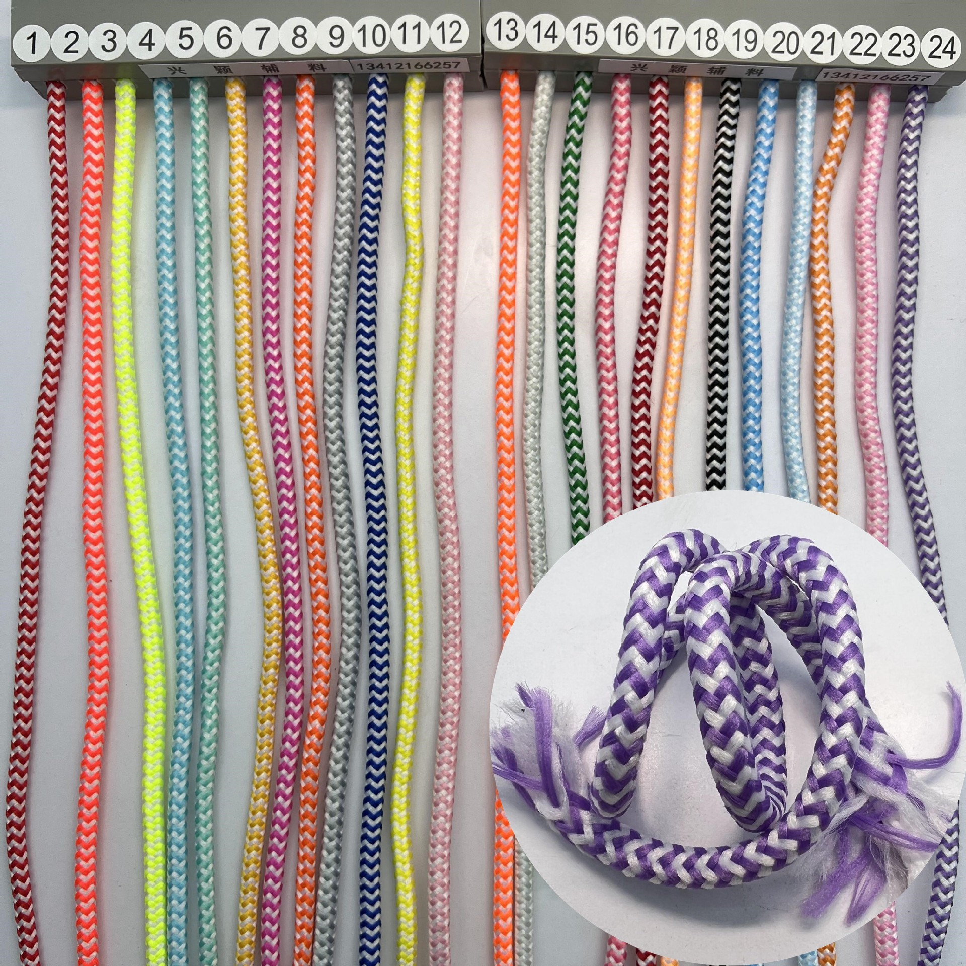 由于绳带类产品繁多,变化百千。仅能拍摄部分产品图片 供参考。常规尺寸及颜色一般有大量现货。如无现有的,您可 提供样板或图片,我司可帮您打样或定制。90%以上的绳带织 法在我司的机器上都是可以实现的。
