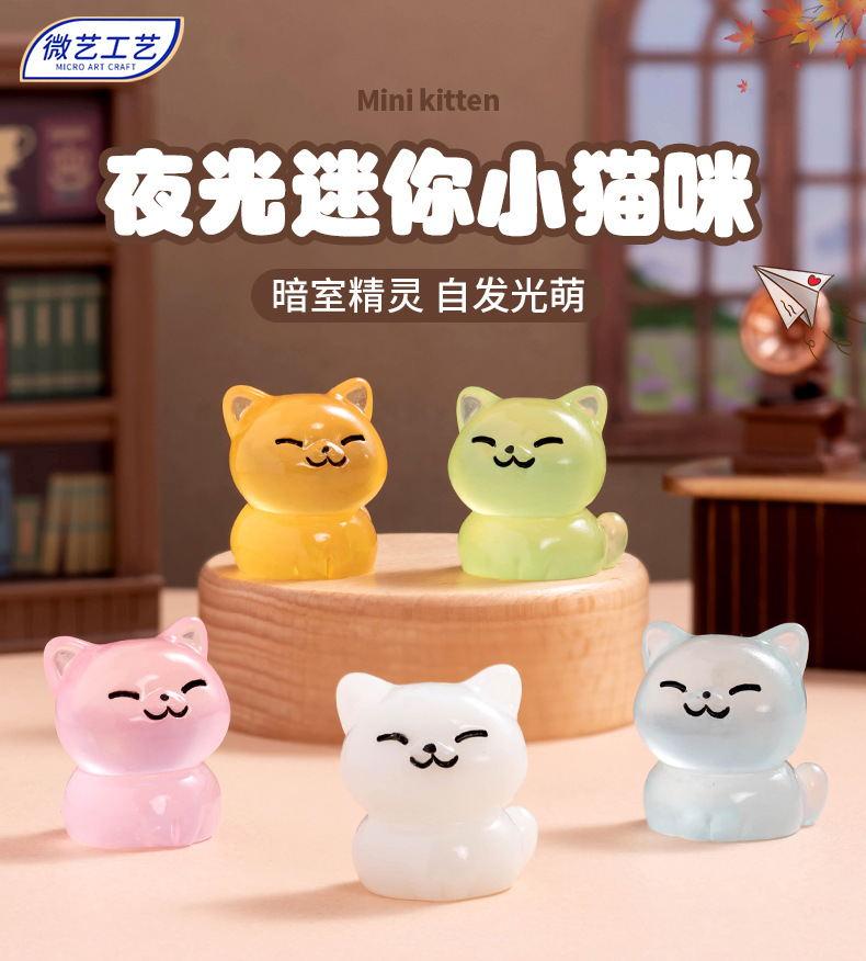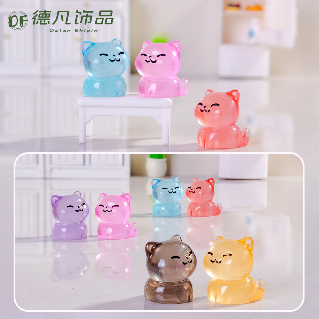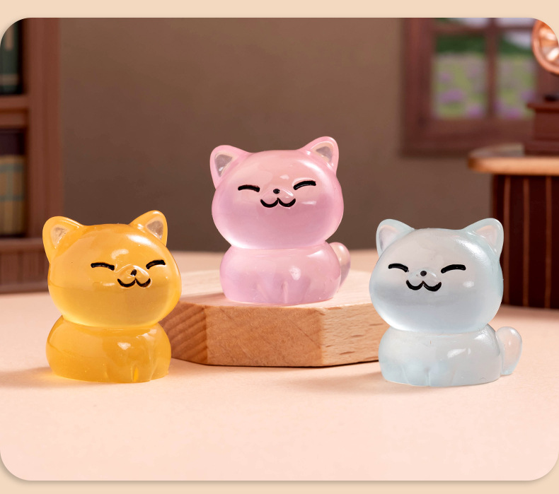 微景観樹脂置物アニメかわいい夜光子猫動物置物デスクトップ車創意装飾品アクセサリー