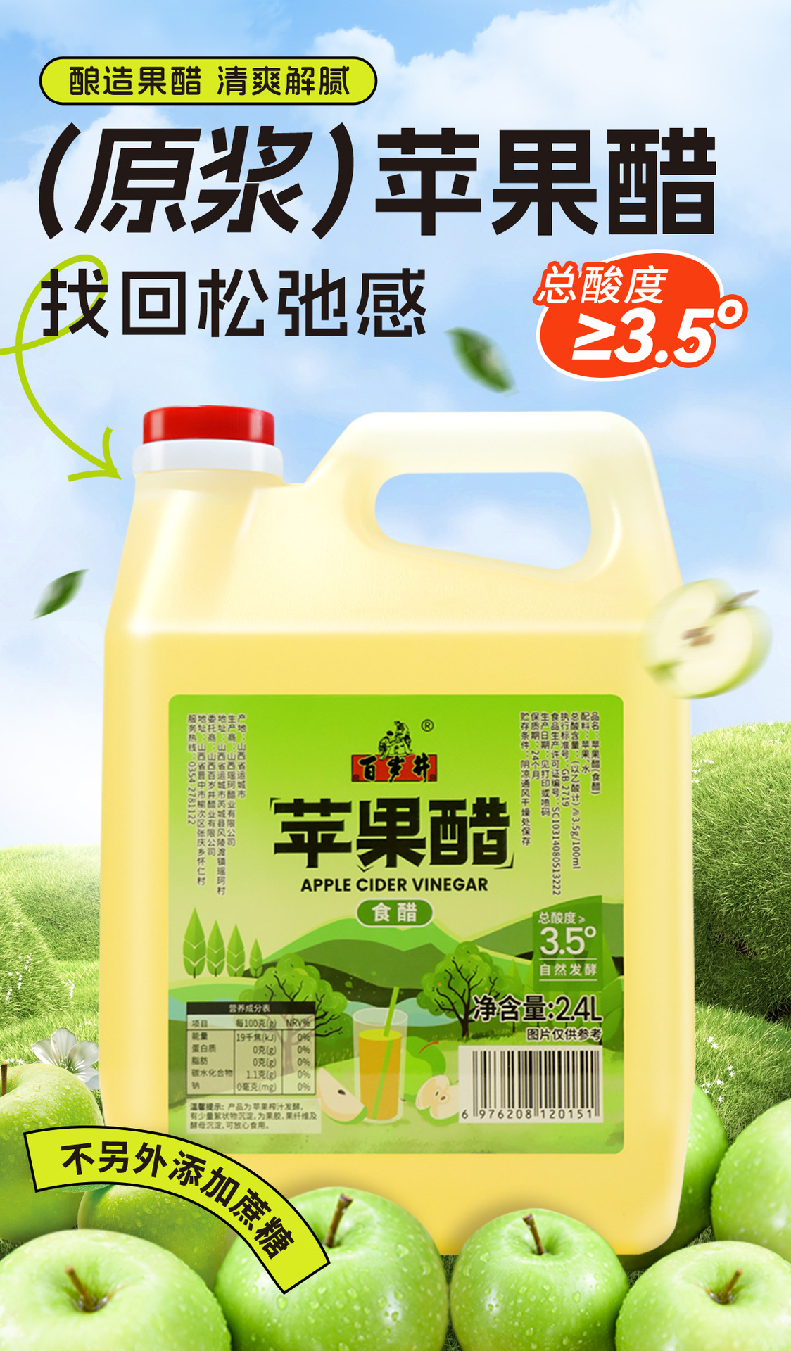 オリジナルピューレアップルサイダービネガー 山西減糖醸造糖 純粋なフルーツビネガー 発酵フィットネスビネガー サラダビネガー