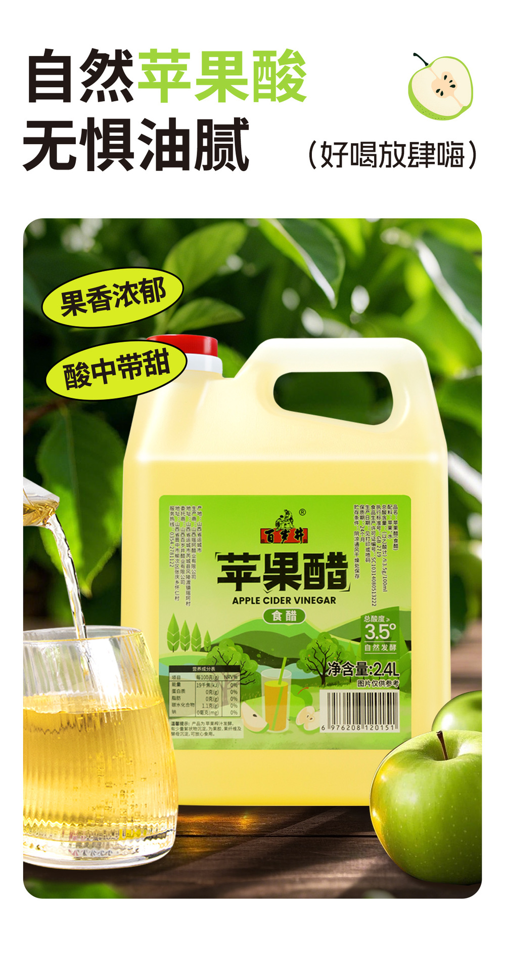 食尚農場1号 山西産純粋リンゴ酢 セレン豊富なフルーツ酢飲料 脂肪ゼロ醸造酢 冷菜用酢