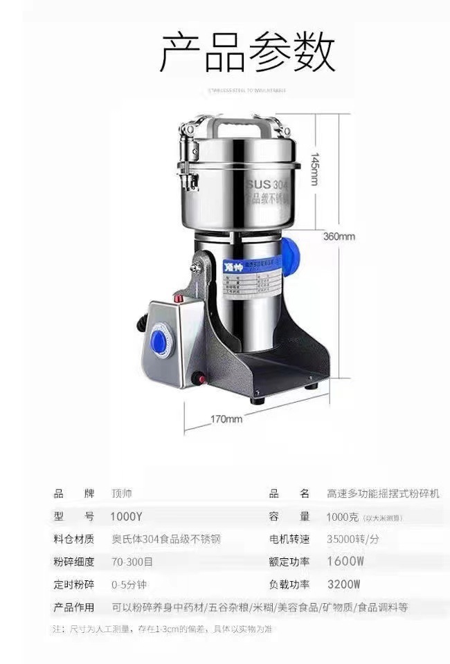 Dingshuai 1000 グラム家庭用粉砕機超微粉砕穀物粉砕機