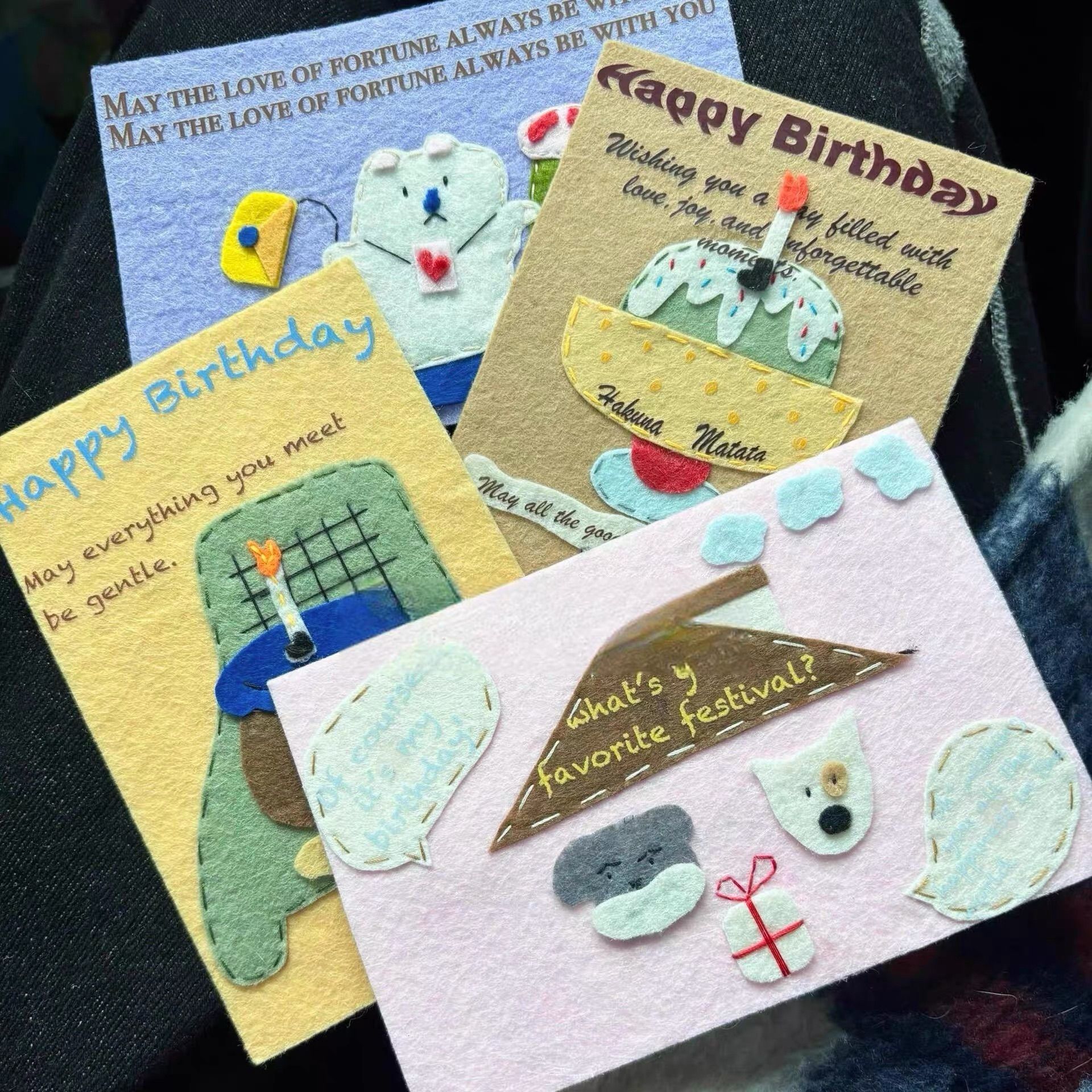 可爱小狗不织布生日贺卡朋友闺蜜生日礼物卡通祝福明信片创意礼物
