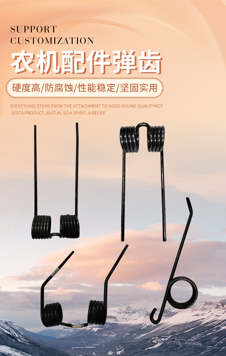 カスタム農業機械用バネ歯、結束機用バネ歯、収穫機用バネ歯、各種仕様の農業機械部品、スプリング、トラクター用ねじりばね
