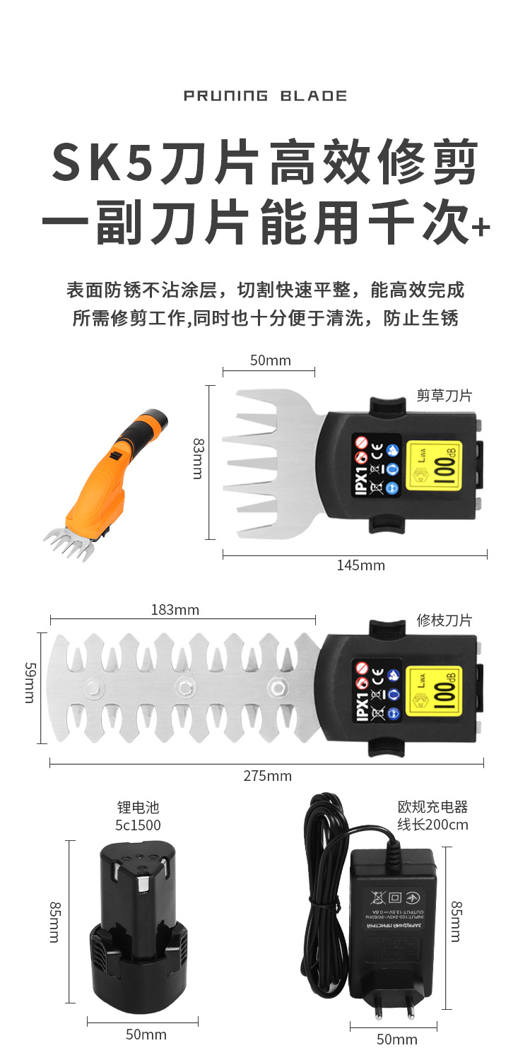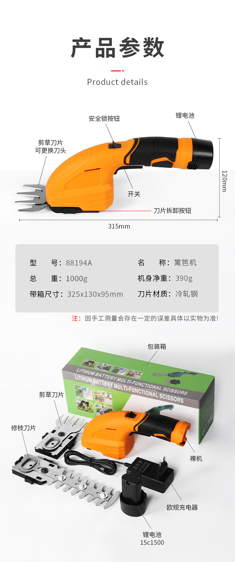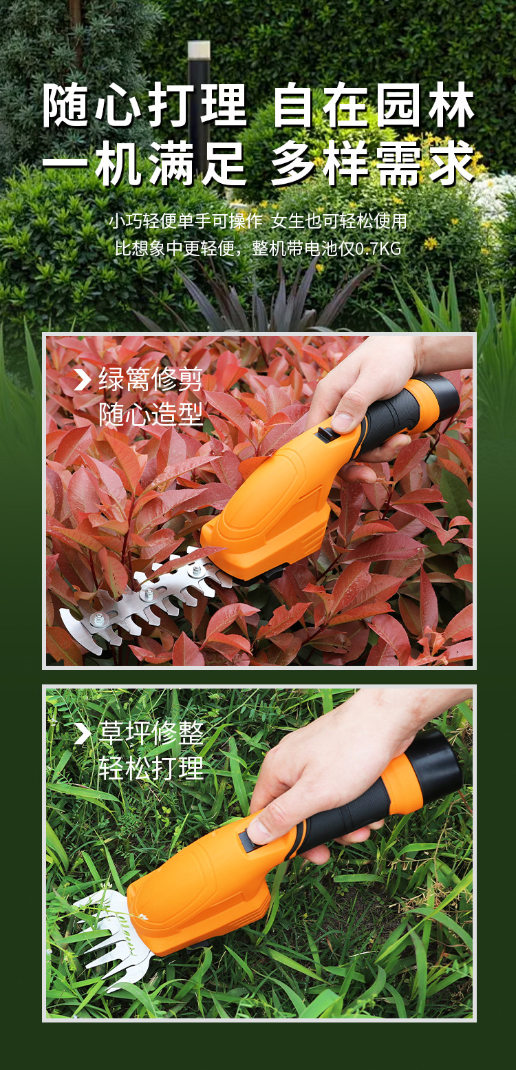 リチウム電池ヘッジトリマー、芝刈り機、家庭用造園剪定機、軽量ミニフェンス機