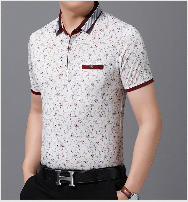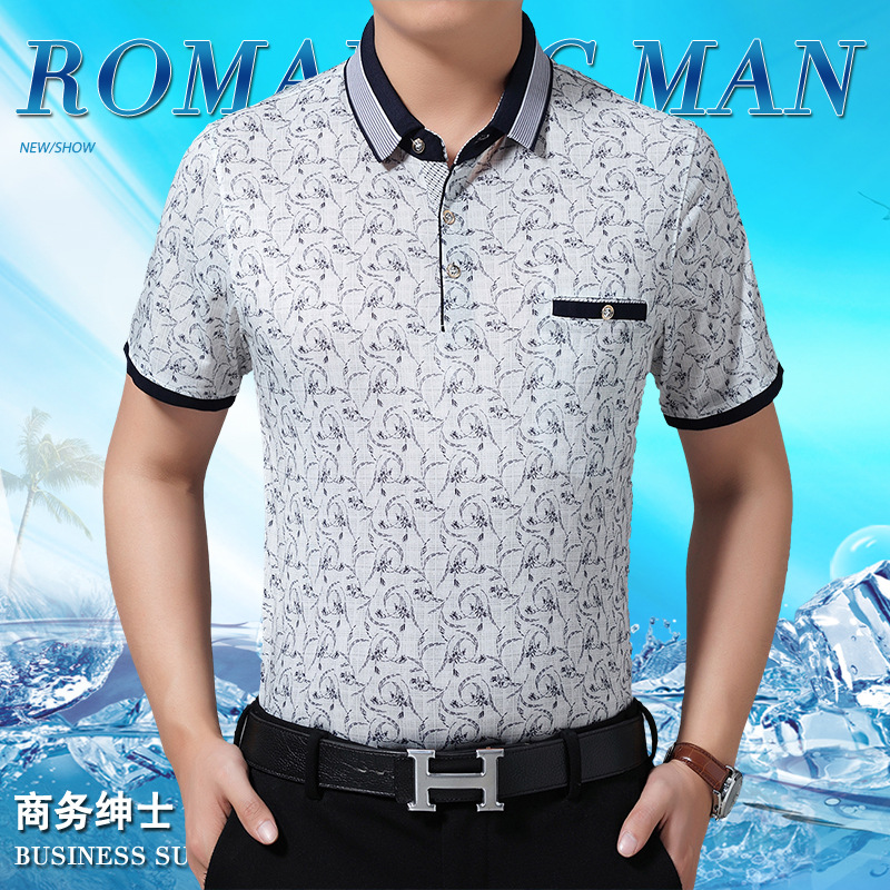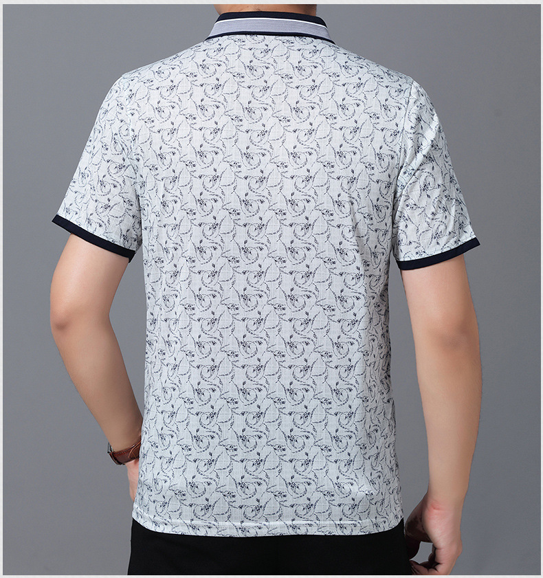 2025 新しい夏の中年男性半袖 Tシャツアイスシルクラペルアイスシルク中高年プラスサイズお父さん Tシャツ