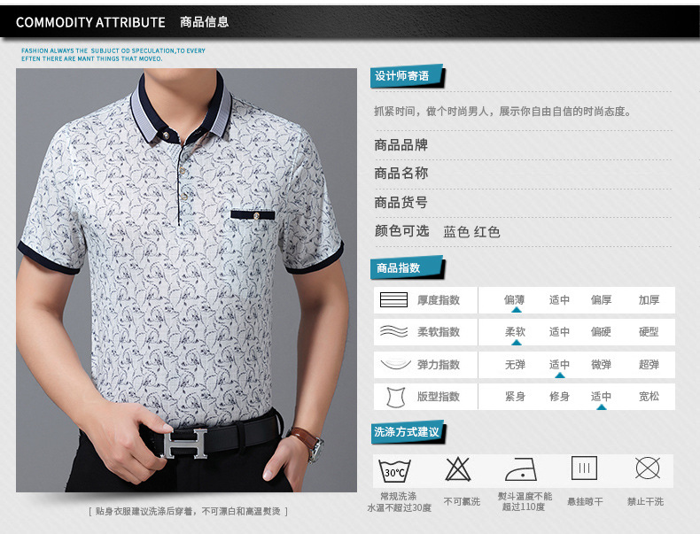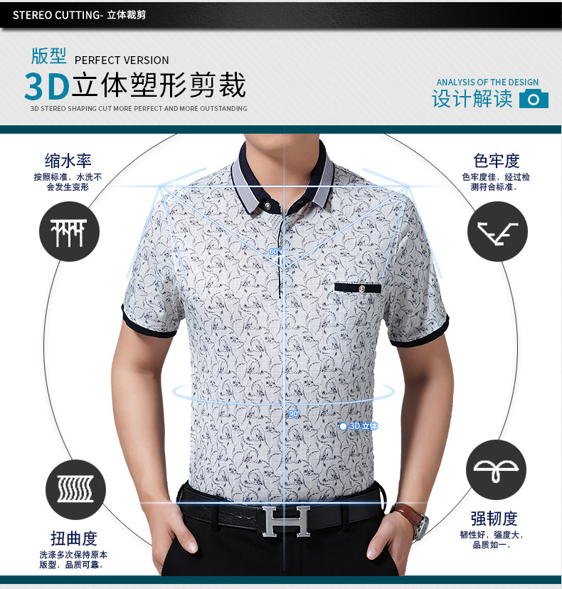 25夏新作薄手ラペルTシャツ夏ポロシャツ中高年紳士服お父さんTシャツカジュアルビジネス