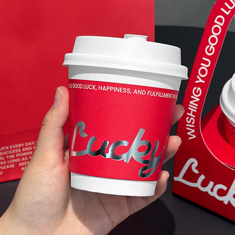 90口径ネット赤使い捨てコーヒーカップミルクティーカップの出前包装二重厚さ防止カバー付き紙コップ