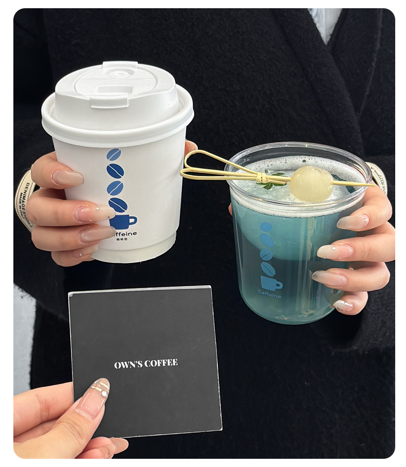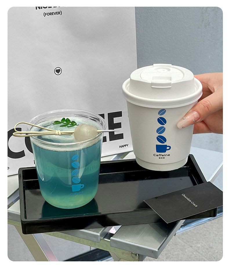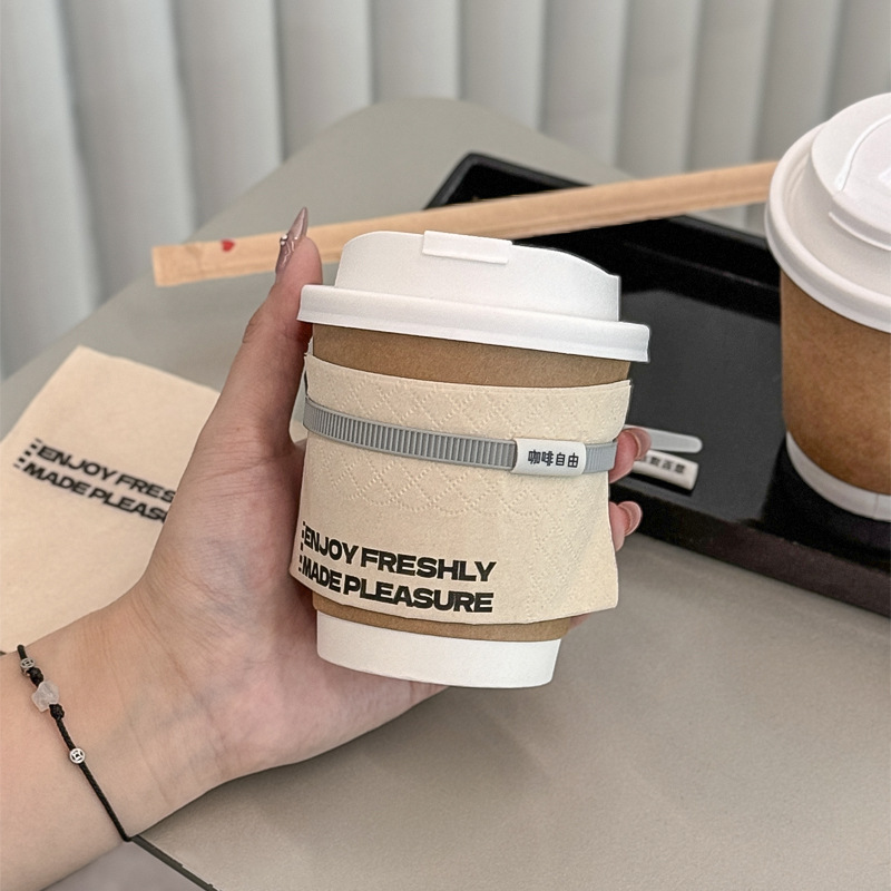 使い捨てコーヒーカップ創意カップセット商用ネット赤帯ミルクティーカップセット個性ティッシュ断熱カップセットins