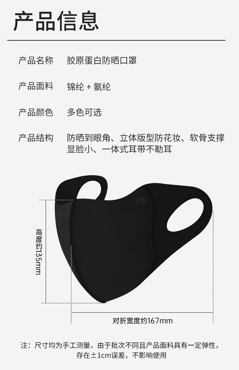 UPF50+ 夏用日焼け止めマスク 女性用 紫外線防止 コラーゲン保湿 3D立体目の保護日よけマスク