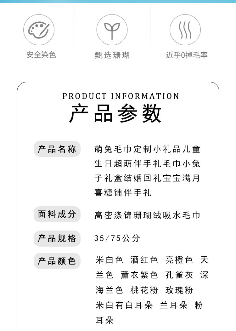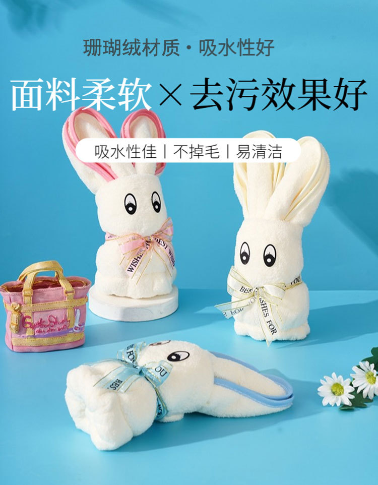 珊瑚绒涤萌兔毛巾创意小礼品儿童生日超萌伴手礼毛巾小兔子礼盒