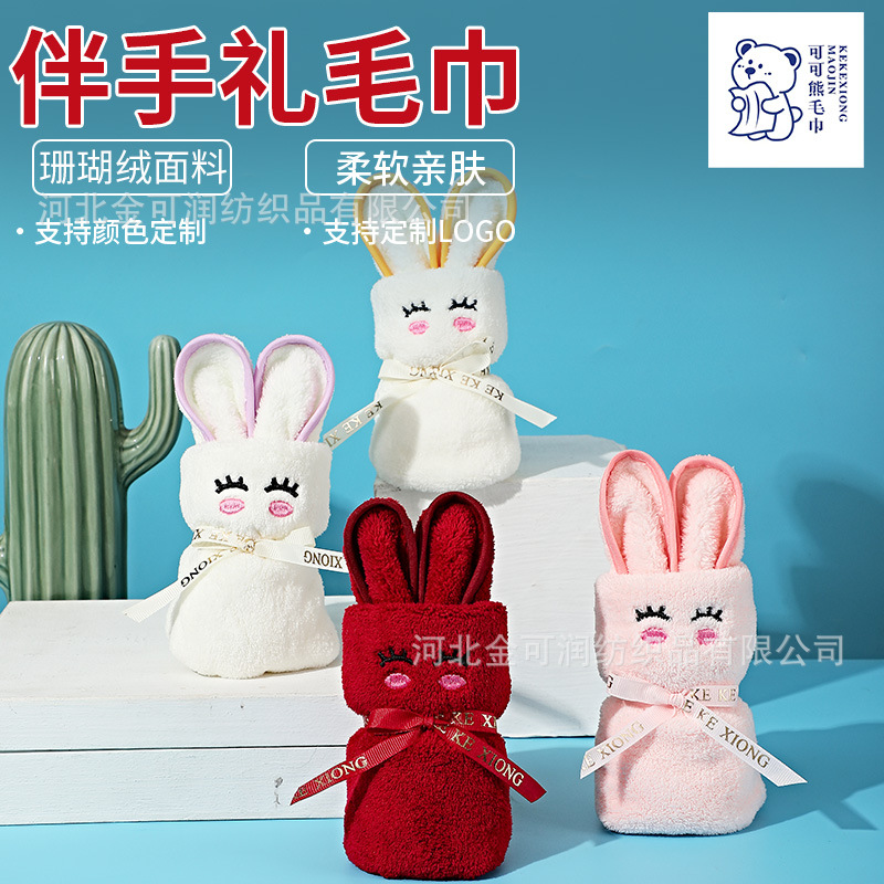 新款包边可爱兔子造型伴手礼毛巾珊瑚绒毛巾婚庆活动开业小礼品