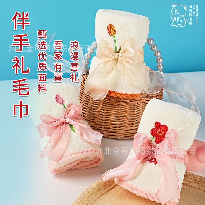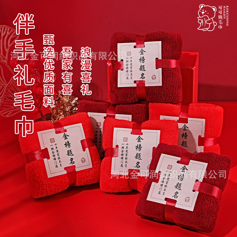 レッドコーラルベルベットウェディングタオル結婚式誕生日入学引っ越しギフトクリエイティブタオルお土産メーカー供給