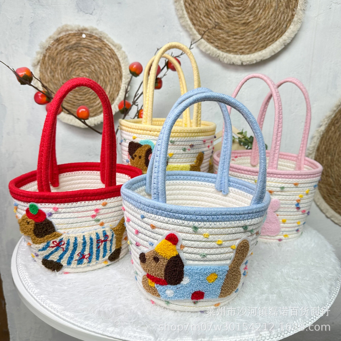 2025新款手提拼接圆形提篮卡通生日伴手礼满月喜礼多巴胺收纳筐