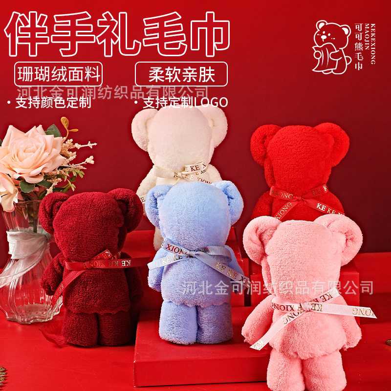 クリエイティブなくまの形のタオルコーラルベルベットギフトセット結婚式のお祝い100日記念品お返しギフト小さなギフト