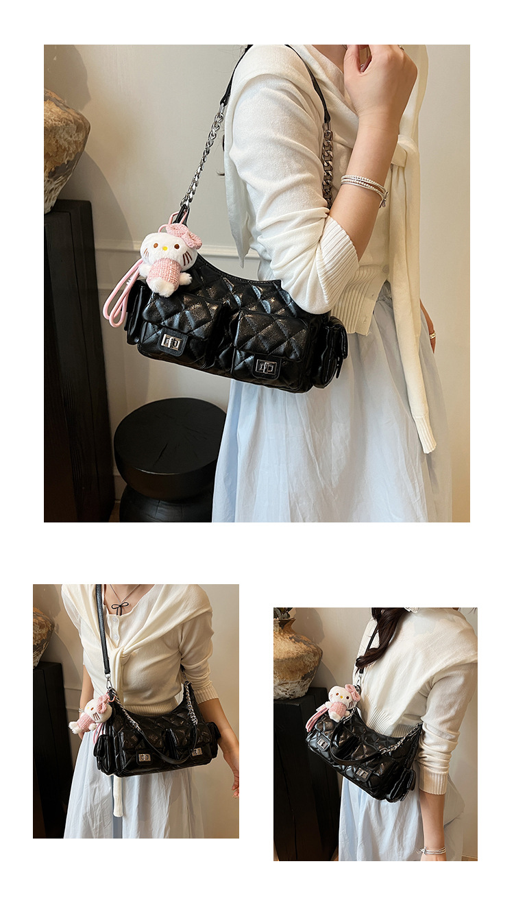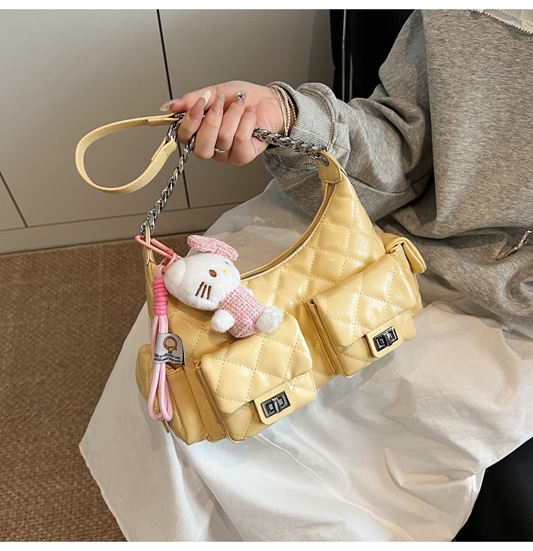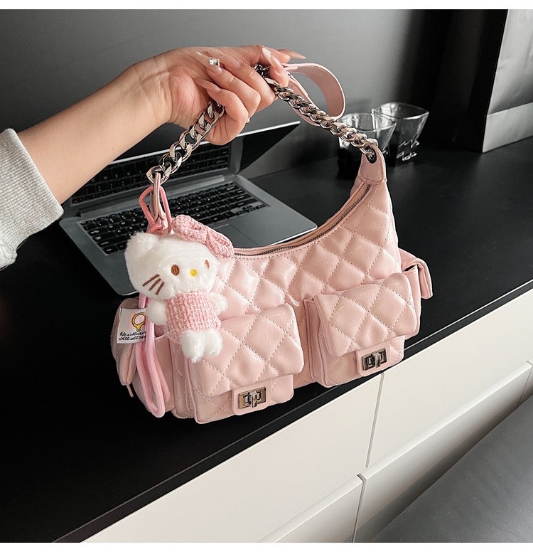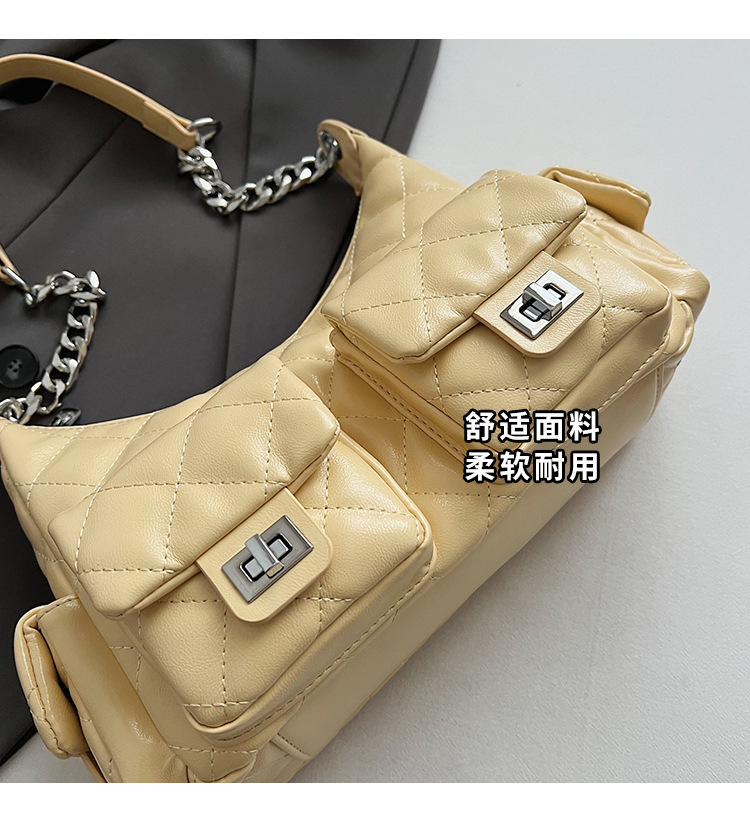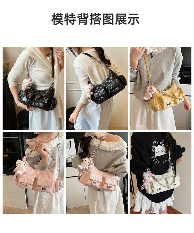 可扣标diy小香风经爆款2025春夏菱格链条女包hobo腋下包