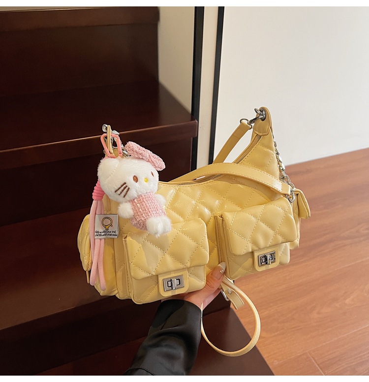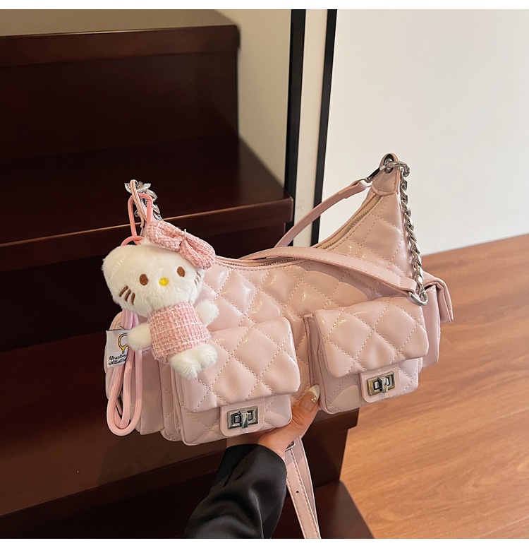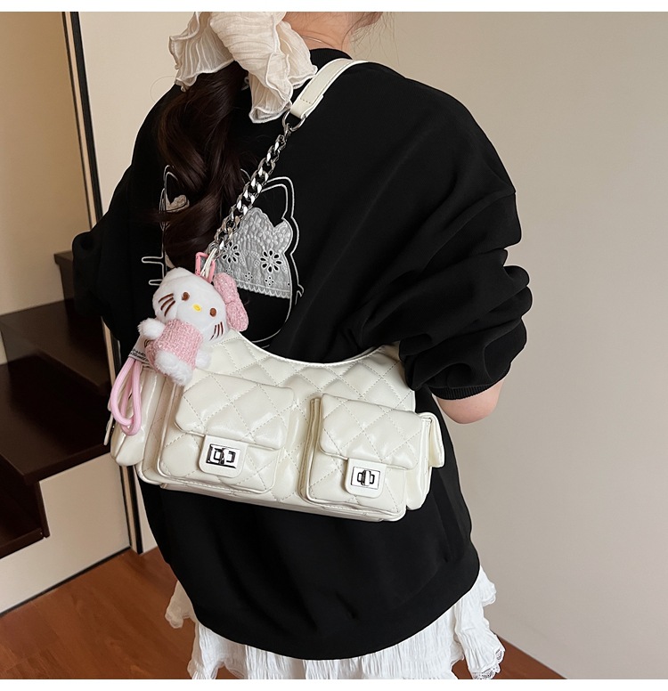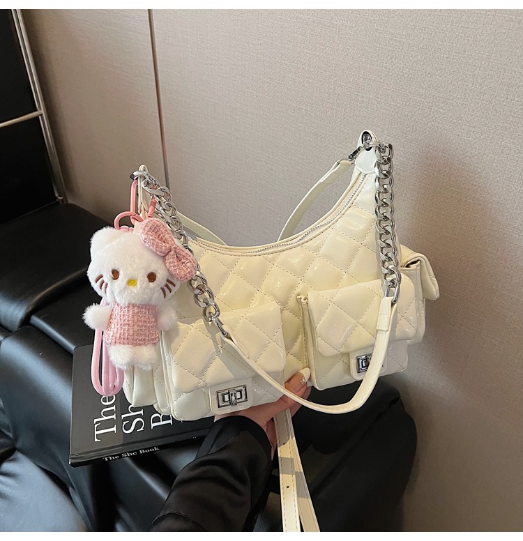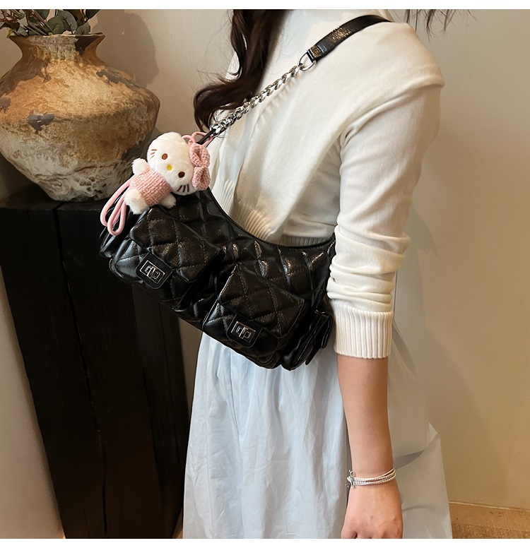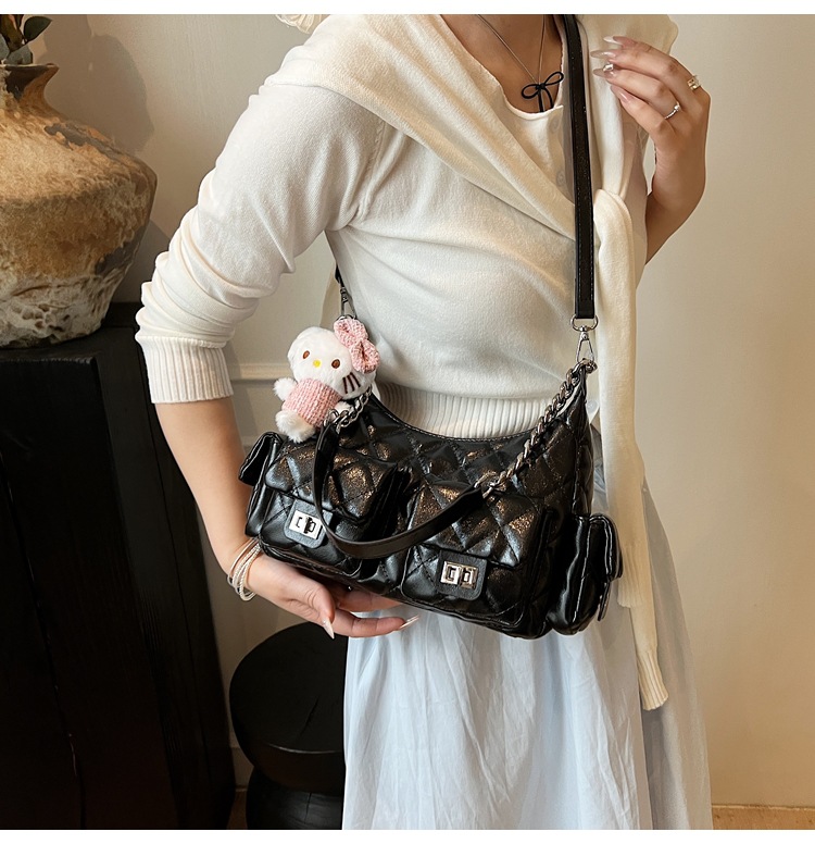 可扣标diy小香风经爆款2025春夏菱格链条女包hobo腋下包