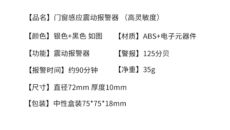 【品名】门窗感应震动报警器 (高灵敏度)