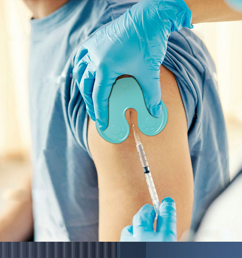 注射補助具の補助錠剤を強く押して痛みを和らげます 4錠セットとして